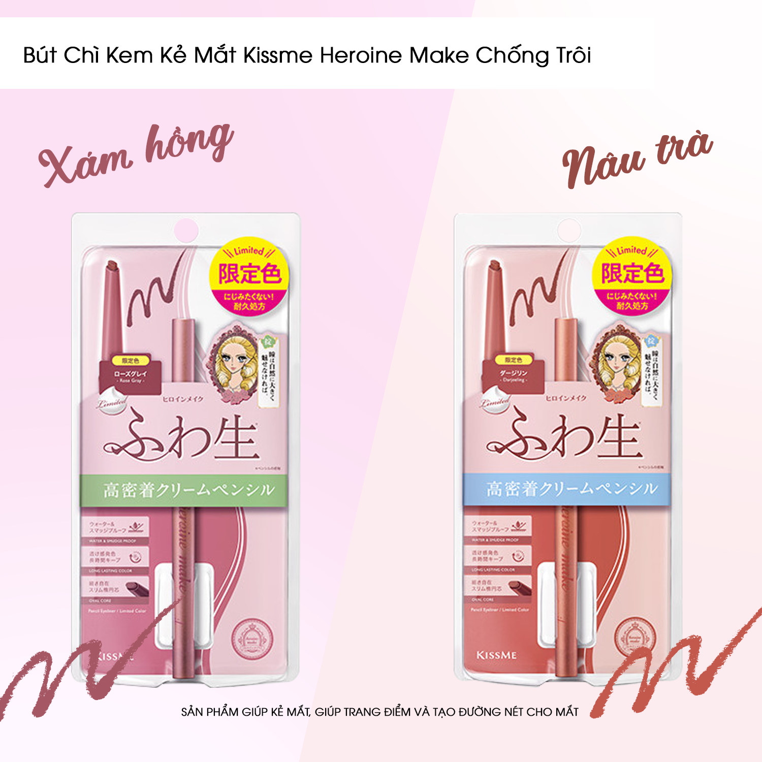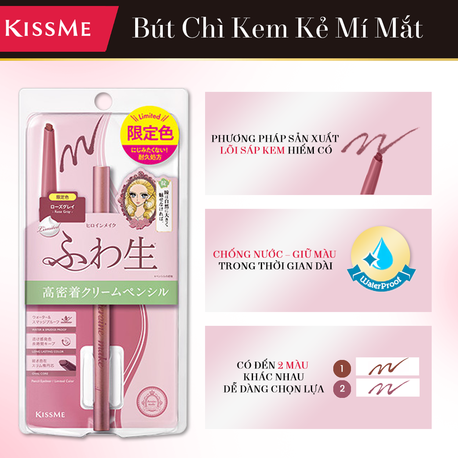 ✨Bút Chì Kem Kẻ Mắt Chống Trôi Màu Xám Hồng Kissme Heroine Make