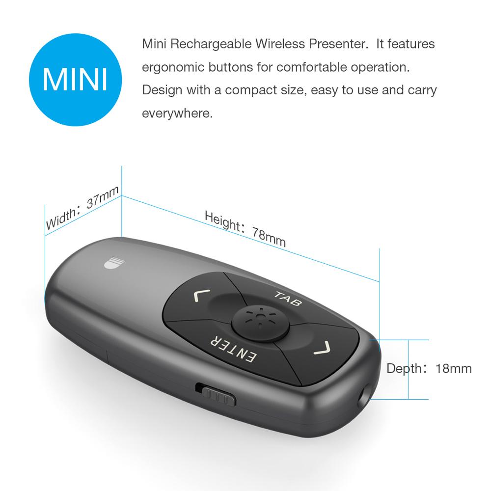 The 2.4GHz Wireless Laser Presenter releases the user from the computer. It supports page up and down, getting into hyperlinks, shifting window, full screen, black screen and red laser. Just gently pr...