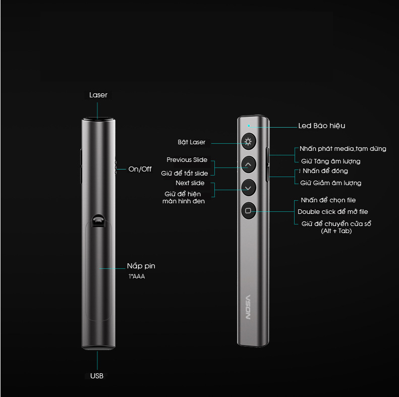 Bút Giảng Trình Chiếu Powerpoint PPT Slide Laser VSON N35 - Thiết Bị USB Wireless Presenter 2.4GHZ