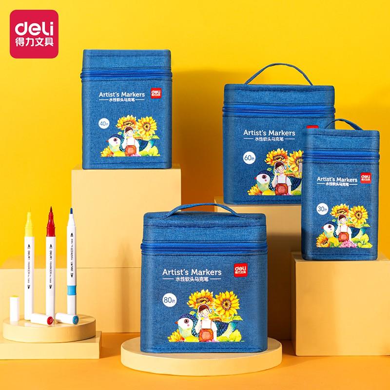 ✨Bút màu marker 2 đầu túi vải Deli - mực có thể rửa được - có đầu brush và vát - 30 màu/40màu/60màu/80màu -70808