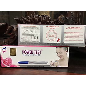 Tên sản phẩm: Que thử thai PowerTest Kích thước test: rộng 3mm Tính năng: Phát hiện thai sớm sau 6 -9 ngày trứng rụng ƯU ĐIỂM: Phát hiện thai sớm sau 6 -9 ngày