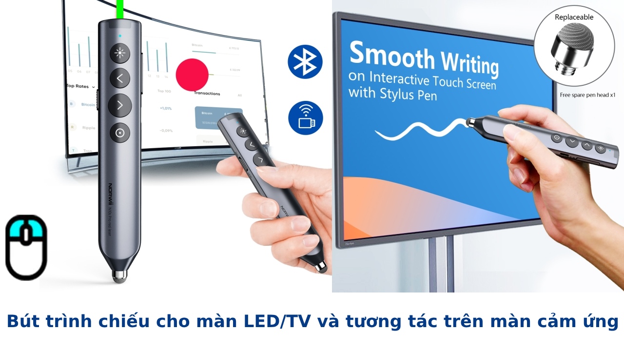 - Sản phẩm tại Hà Nội Với Norwii N10S Pro, các bài thuyết trình của bạn sẽ trở nên chuyên nghiệp, cuốn hút và hiệu quả hơn bao giờ hết. Bút trình chiếu Bluetooth dùng cho màn hình tương tác, LED Norwii N10S Pro laser màu xanh