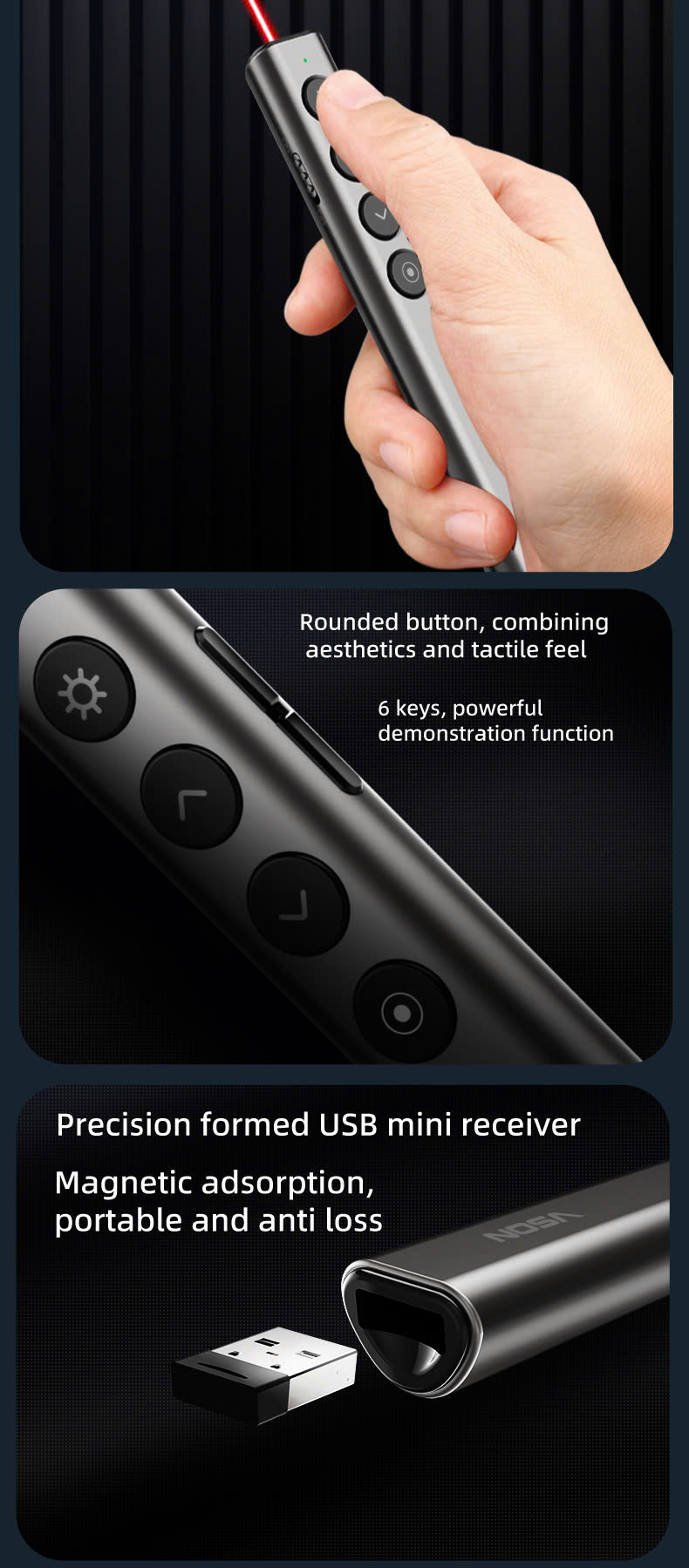 Bút Laser eXtreme LP1101 Thuyết Trình Chiếu PowerPoint | Pin Sạc Type C | Màn Hình LED | Điều Khiển Slide THÔNG TIN CHI TIẾT Đầu phát USB nhỏ gọn dễ dàng gắn vào đuôi