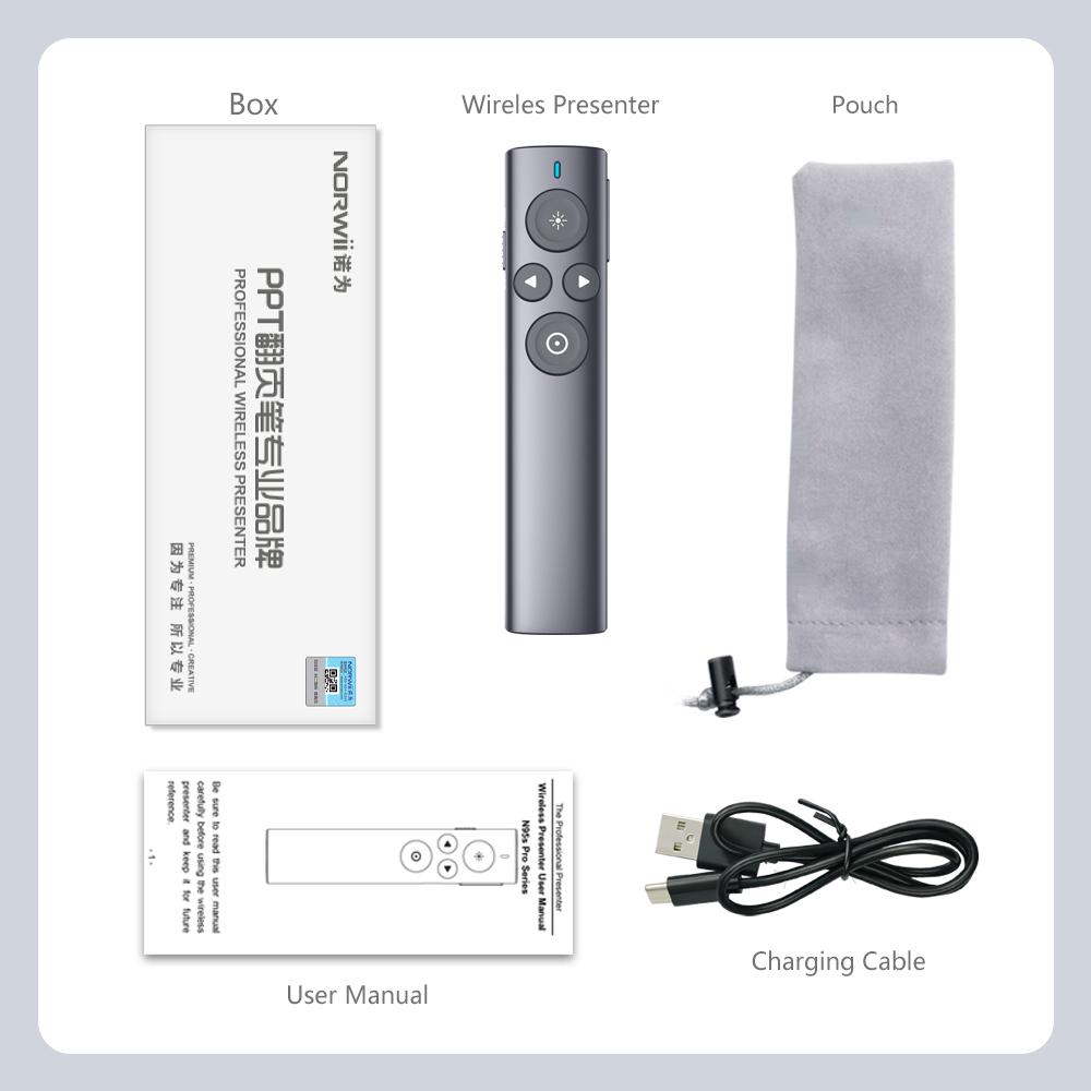 Bút trình chiếu NORWii N95 Pro Spotlight cao cấp 2in1 Thông số kỹ thuật : Model : NORWii N95 Pro SPOTLIGHT Kết nối : 2.4GHz Đầu USB 2in1 :thu phát Wireless 2.4Ghz và USB dung