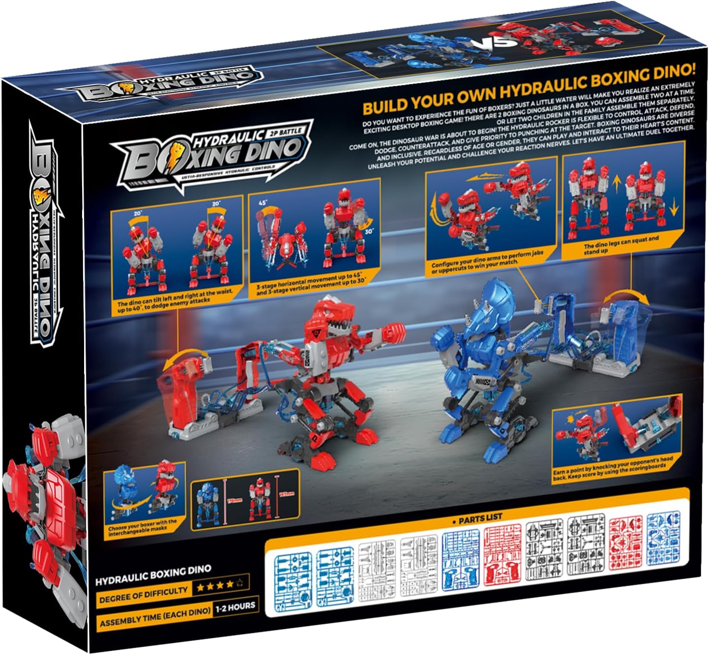 Mua tại TiktokBộ đồ chơi lắp ráp 2 chú khủng long đấu boxing, hoạt động bằng hệ thống thủy lực chỉ cần nước, không dùng pin. Khủng long có thể nghiêng mình né đòn, xoay người tấn công, tung đấm thẳng, đấm móc và đứng ngồi linh hoạt. Người chơi điều khiển khủng long thi đấu đối kháng, ghi điểm bằng cách hạ gục đối thủ. Bộ sản phẩm giúp trẻ phát triển kỹ năng lắp ráp, tư duy cơ học và phản xạ nhanh thông qua trò chơi đối kháng đầy kịch tính.