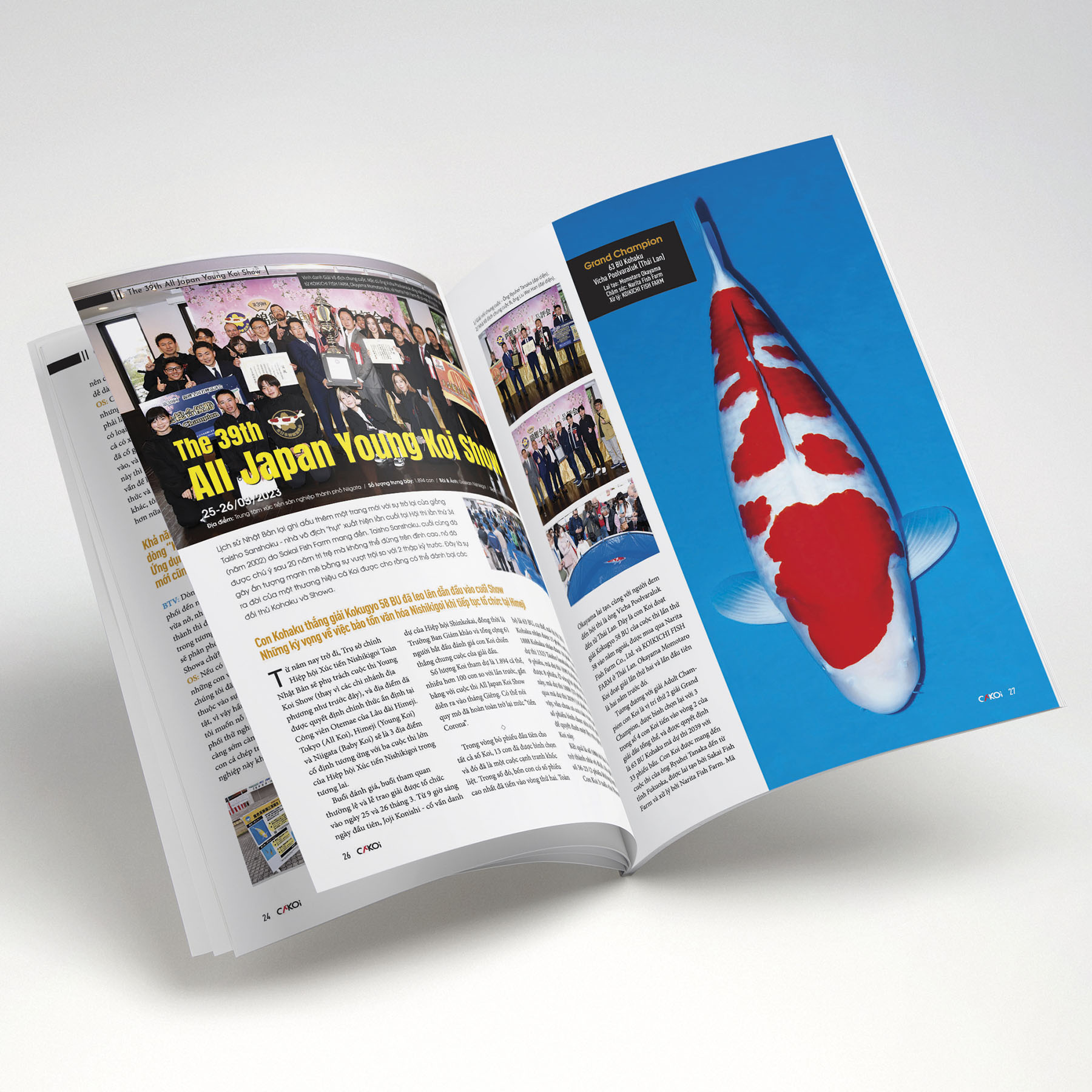 “Cá Koi Vietnam – Guide to Nishikigoi Life” là phiên bản tiếng Việt của Gekkan Nishikigoi (Koi Magazine do Shinkokai Nhật Bản phát hành), phát hành hàng Quý tại Việt Nam. Có trong tay quyển