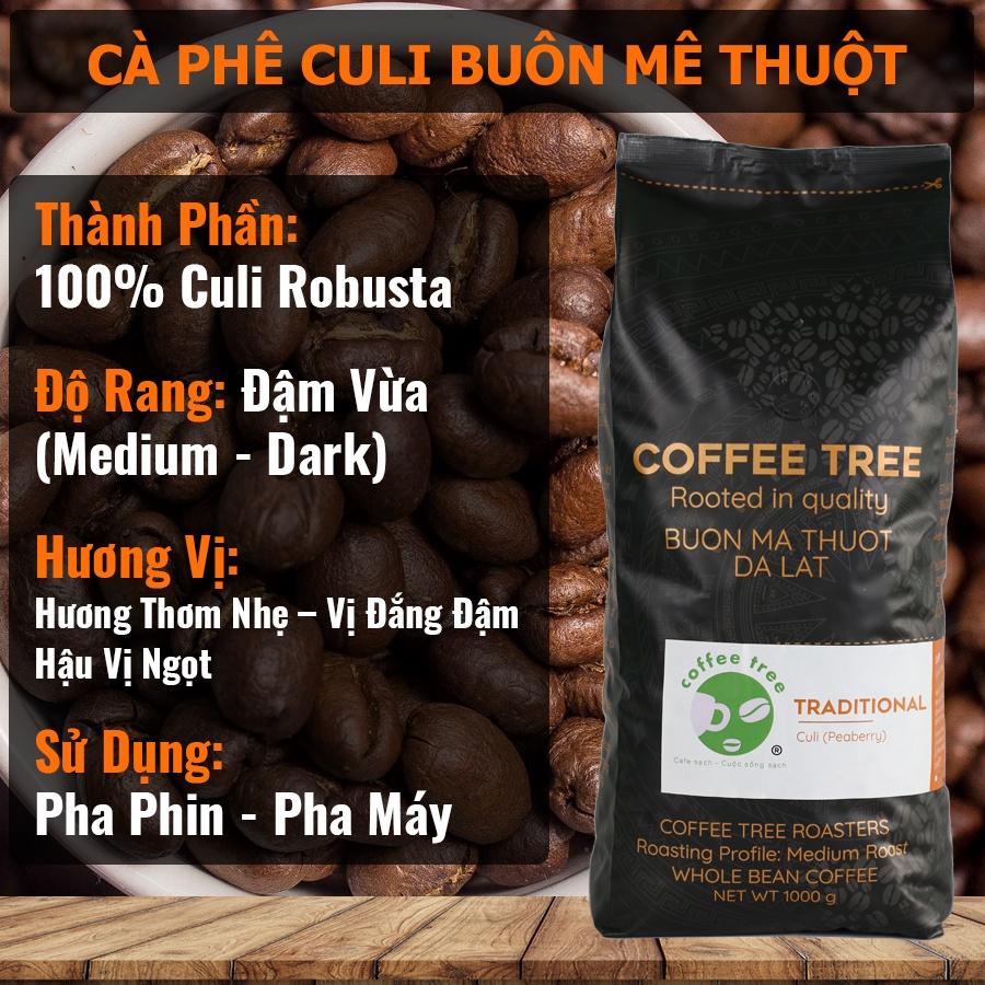 Nguyên liệu: 100% Cà phê Culi (Robusta Peaberry)
