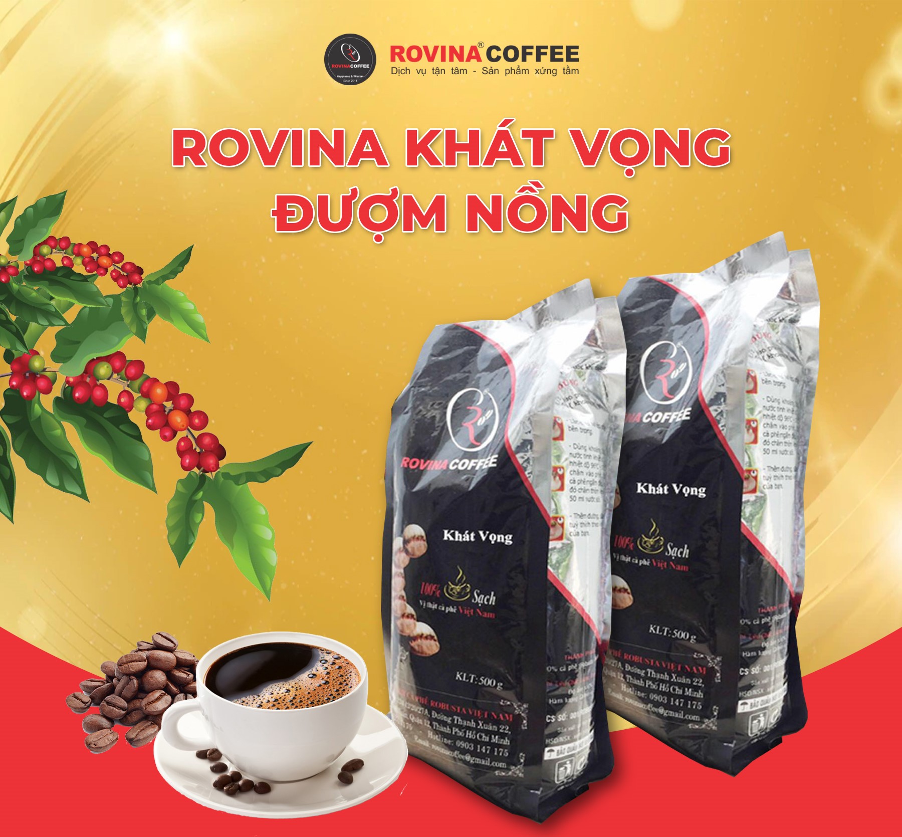 ✨Cà Phê Rovina Khát Vọng - Pha Máy - Gói 500gr Nguyên Hạt Với Mùi Vị Đặc Trưng Đúng Vị Thật Của Cà Phê Việt Nam, Vị Đắng Của Robusta, Mùi Thơm Của Arabica