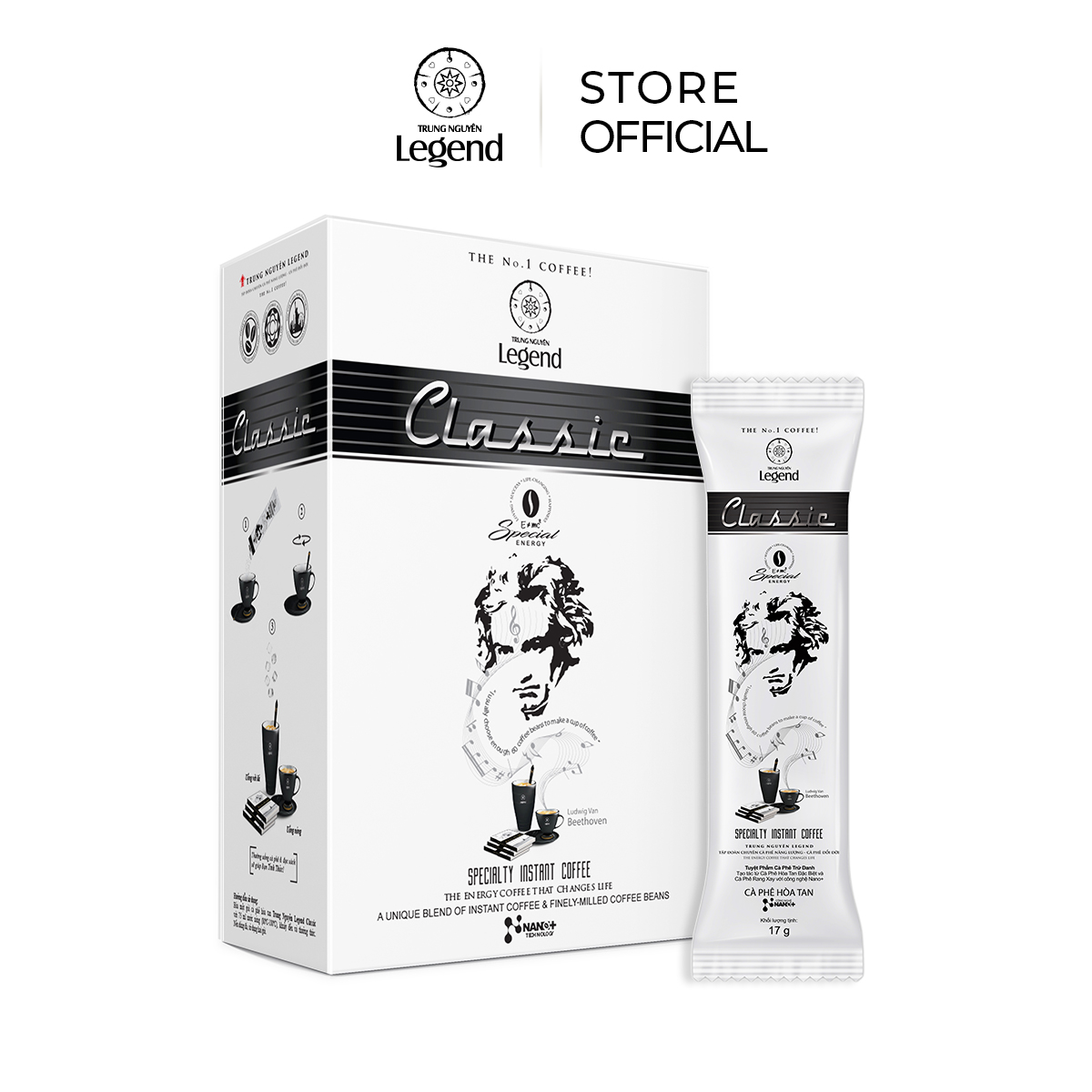- Cảm hứng từ những bản giao hưởng lừng danh của thiên tài âm nhạc người Đức – Ludwig Van Beethoven và ước muốn phụng sự người đam mê cà phê trên toàn thế giới những tách cà phê năng lượng tuyệt hảo, các chuyên gia của Tập đoàn cà phê số 1 – Trung Nguyên Legend đã tiên tác nên tuyệt phẩm cà phê Trung Nguyên Legend Classic.