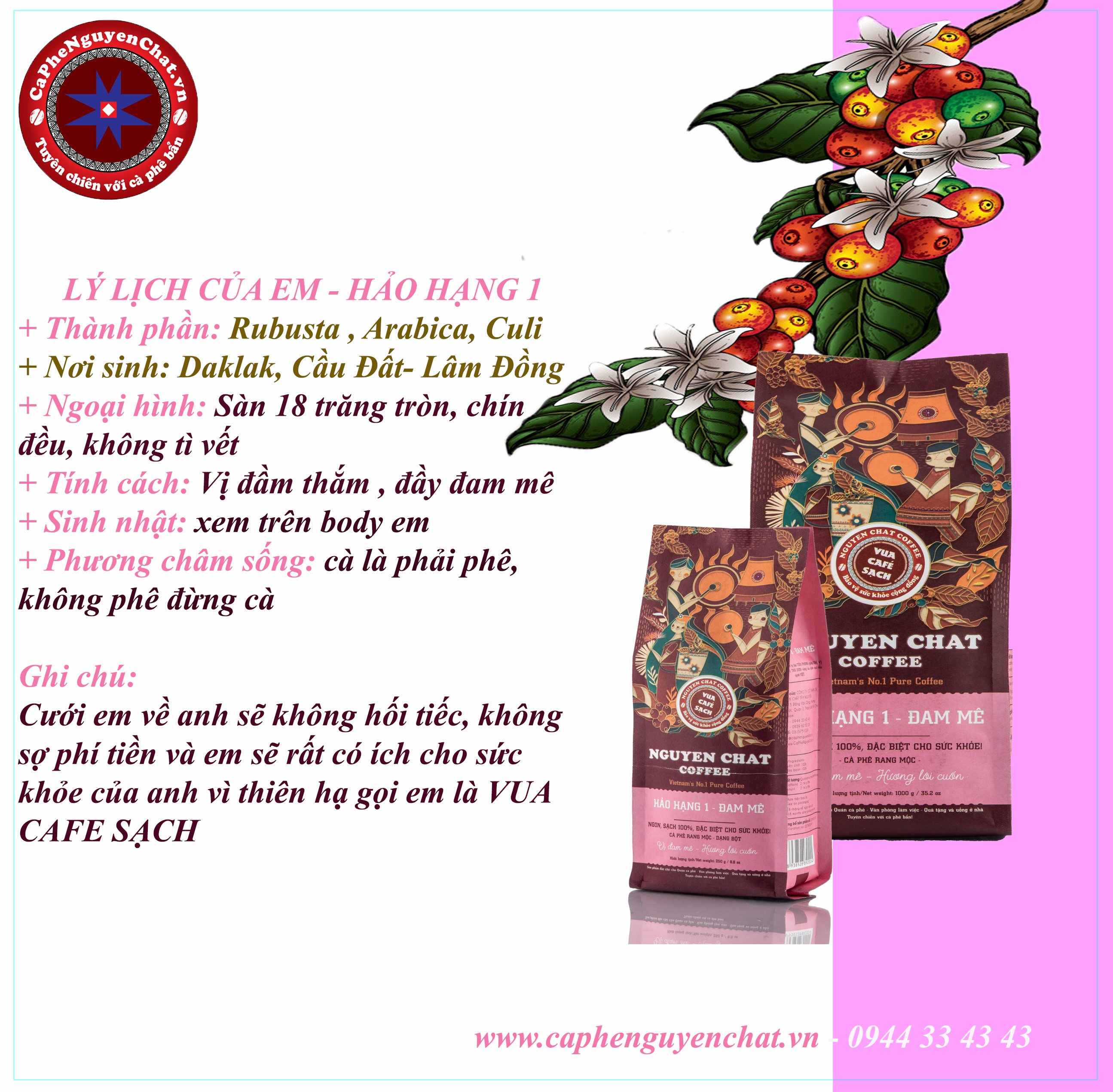 Cà Phê Nguyên Chất HẢO HẠNG 1 Sạch 100% Đặc Biệt có vị đắng đậm đà, mùi hương thơm nhẹ, cafein vừa, chát, hậu vị ngọt.