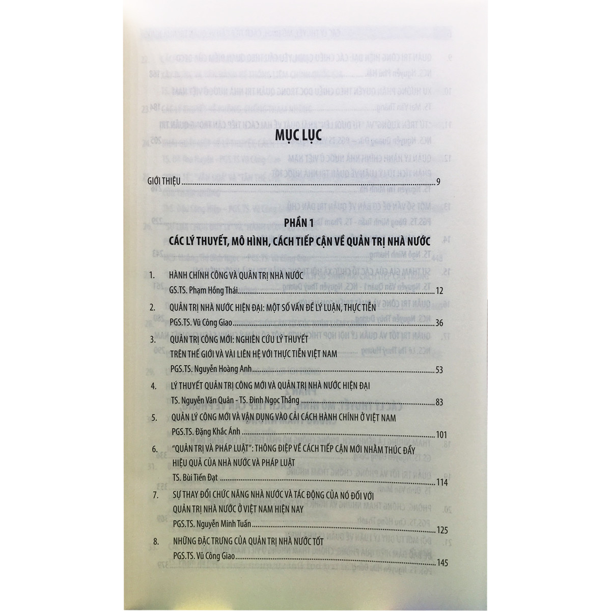 - Phần 1: Các lý thuyết, mô hình, cách tiếp cận về quản trị nhà nước