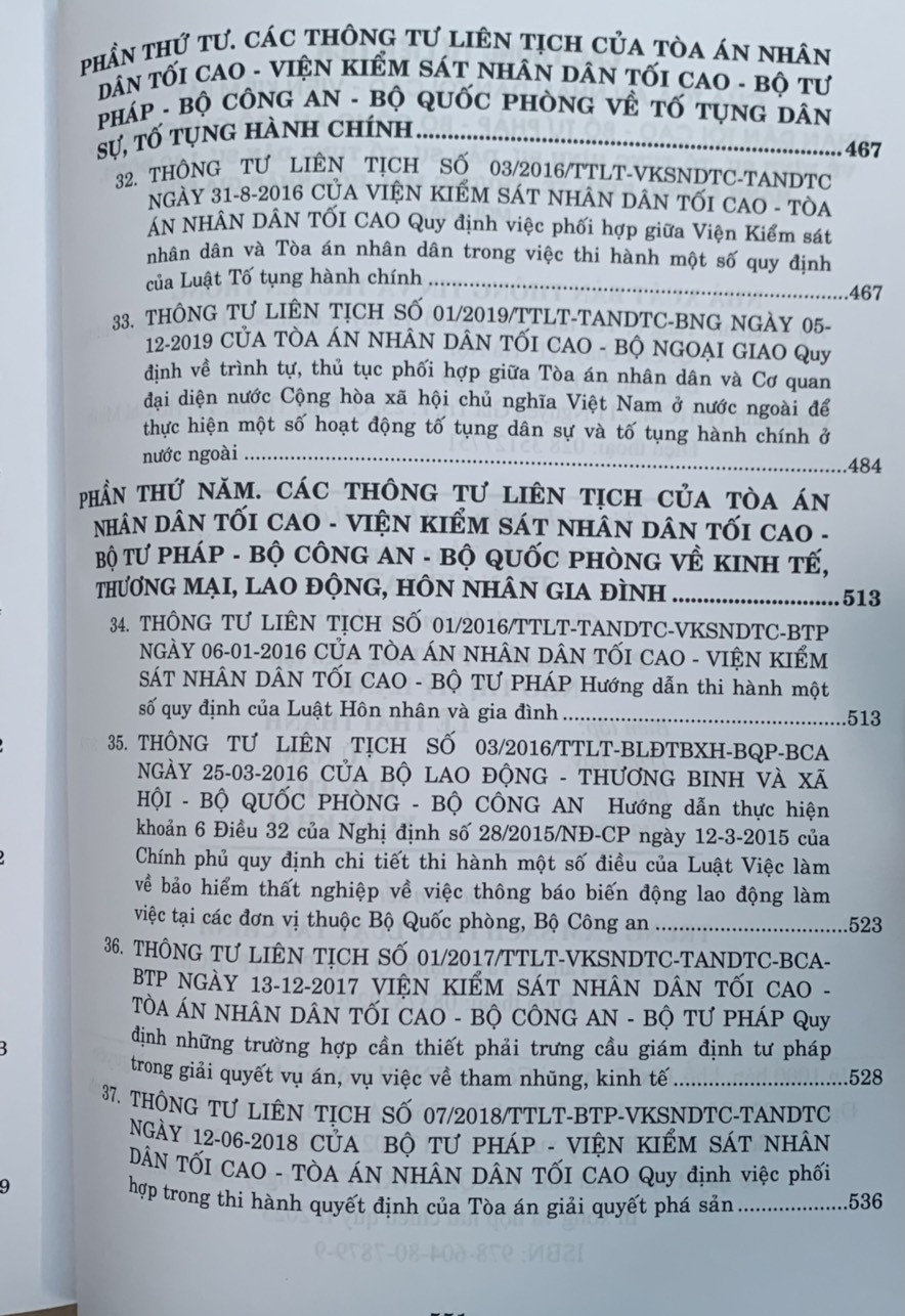 Phần thứ tư: Các Thông tư liên tịch của Tòa án nhân dân tối cao - Viện Kiểm sát nhân dân tối cao - Bộ Tư pháp - Bộ Công an - Bộ Quốc phòng về tố tụng dân sự, tố tụng hành chính