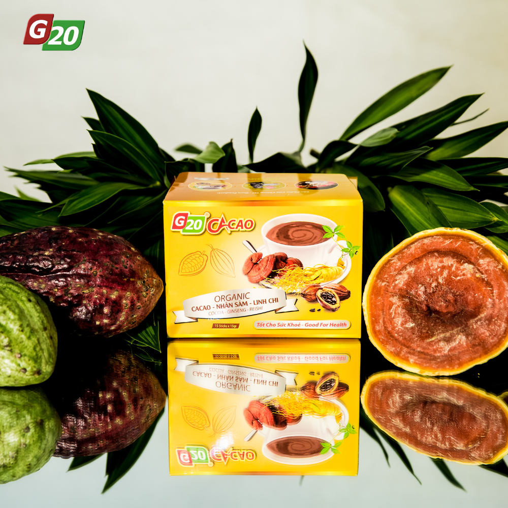 Cacao - Nhân Sâm - Linh Chi Hòa Tan - G20 Coffee Giới thiệu sản phẩm: Cacao - Nhân Sâm - Linh Chi Hòa Tan G20 Coffee là sự kết hợp hoàn hảo giữa ba