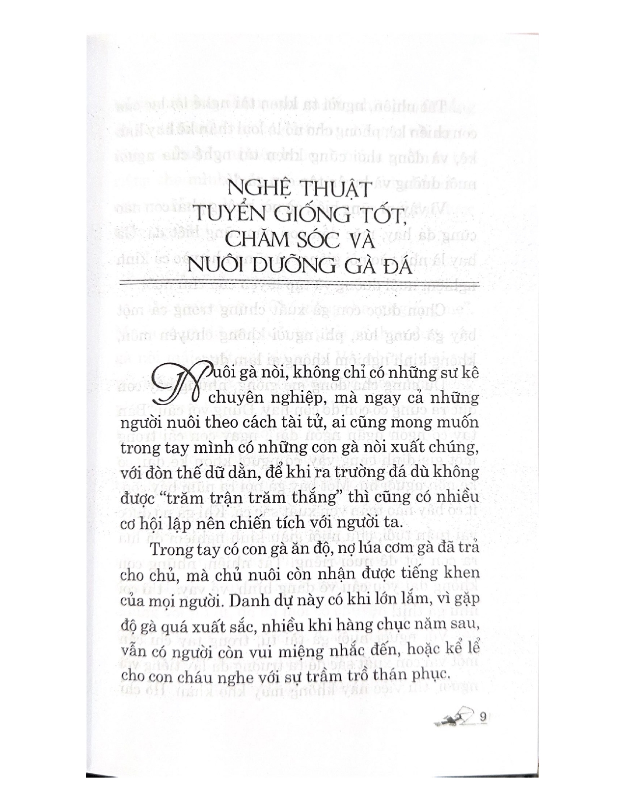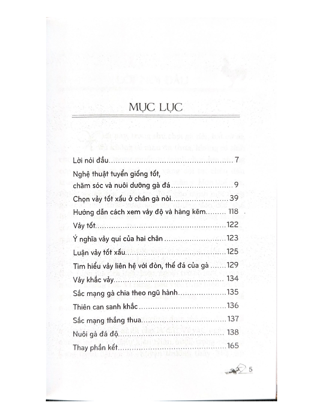 - Giới thiệu Cách Chọn Gà Đá Xưa nay, trong thú chơi gà nòi, bất cứ ai, dù không có máu ăn thua, không có tính chơi trội, cũng mong muốn tự mình chọn lựa những con chiến kê có thành tích vang dội tại chốn đấu trường, như vậy mới bằng lòng mãn ý. Hơn thế nữa, nhiều người còn muốn tự “đúc” cho mình dòng gà thật hay, thật xuất sắc với những đòn độc, thế hiểm để nuôi mãi suốt đời, và truyền giống lại cho con cháu đời sau. Đó là ý muốn tạo được mái gốc, mái tuyển cho riêng mình. Tự tạo một mái gốc vừa ý, việc này tất nhiên quá khó, đòi hỏi sự đam mê cao độ và sự quyết tâm thực hiện của mình, may ra mới được. Ngoại trừ có một cơ may nào thì không nói. Vì rằng, nếu việc thực hiện dễ, thì giới nuôi gà xưa nay, ai ai cũng có dòng mái riêng để nuôi thoả thích rồi! Đã nuôi gà nòi thì ai cũng đam mê cao độ. Nuôi một vài con mấy ai đã cho là đủ? Vì vậy, ngày xưa, những sự kê có điều kiện chăn nuôi, trong nhà úp hàng trăm bội gà là chuyện thường thấy. Mỗi dịp đem gà đi đá ở tỉnh xa, họ chở gà trên vài ba chiếc ghe to, trên đó úp cơ man nào là bội… Ngày nay, ít ai có điều kiện như vậy, và chúng tôi cũng không dám khuyến khích các bạn nuôi với số lượng quá nhiều. Thiết nghĩ, mỗi chúng ta, ham lắm, trong nhà nuôi độ vài ba con đã là quá đủ. Thà nuôi số lượng ít nhưng, tất cả đều gà dữ gà hay cũng đủ cho ta toại ý rồi. Và, như vậy cũng đủ nổi tiếng rồi! Sự khó khăn, vất vả, đó cũng là cái thú nuôi gà nòi tự mình chọn được cho mình những con gà xuất sắc trong thế đá, đòn đa, và có những vảy tốt, vảy quí hiếm mà nuôi. Những con chiến kê “đáng đồng tiền” đó chắc chắn ai cũng phải quí, phải ham. Muốn vậy, các bạn phải nắm được bí quyết chọn gà cách xem hình tướng, cách chọn vảy ra sao… Chọn được gà tốt là một điều mừng, nhưng còn phải nắm vững cách nuôi dưỡng và chăm sóc gà trong từng giai đoạn ra sao nữa thì nỗi lo và sự vất vả mới… không còn để nặng trong ta nữa. Cuốn sách "Cách chọn gà đá" này sẽ đem lại cho bạn đọc các kiến thức cần thiết