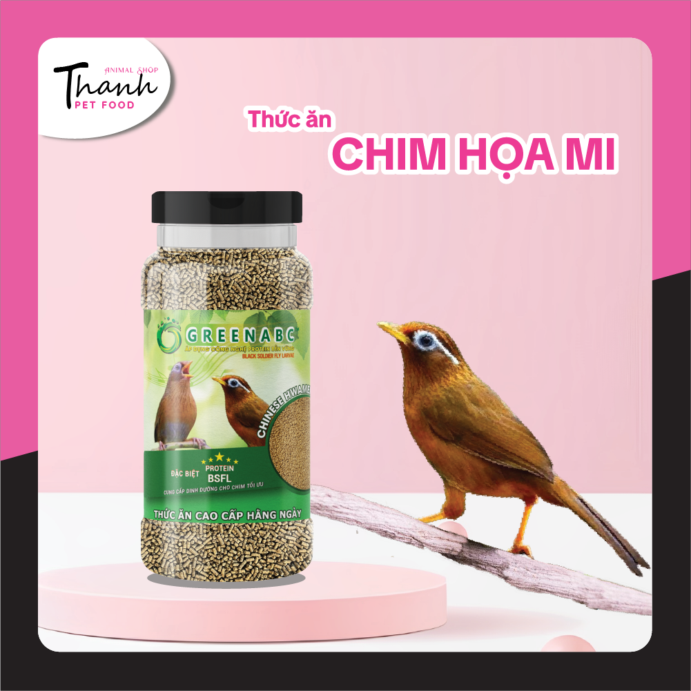 GREENABC - THỨC ĂN CHIM HỌA MI HÀNG NGÀY & BỔ SUNG GREENABC là thức ăn cao cấp dành cho CHIM HỌA MI. Đặc biệt sản phẩm GREENABC được sản xuất theo phương pháp Áp dụng công nghệ PROTEIN bền