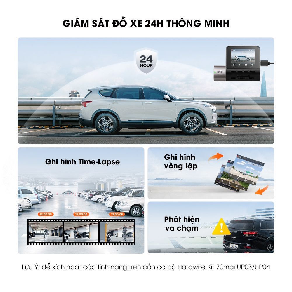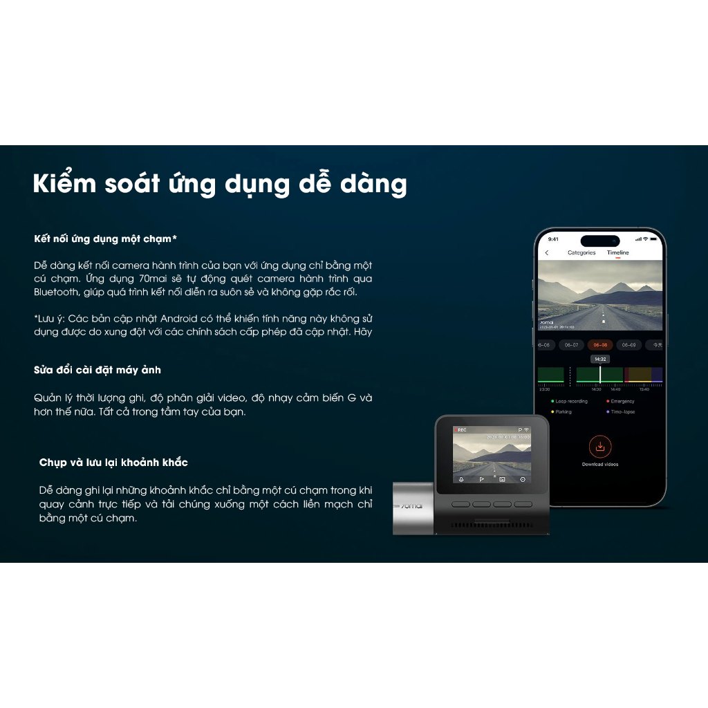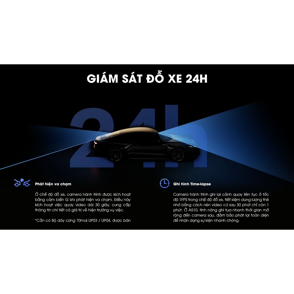 Camera hành trình ô tô Xiaomi 70mai cao cấp A800S chất lượng hình ảnh 4K, tích hợp Wifi (Bộ tích hợp Camera trước + Sau) - Bản Quốc Tế - Phiên bản A800s là model