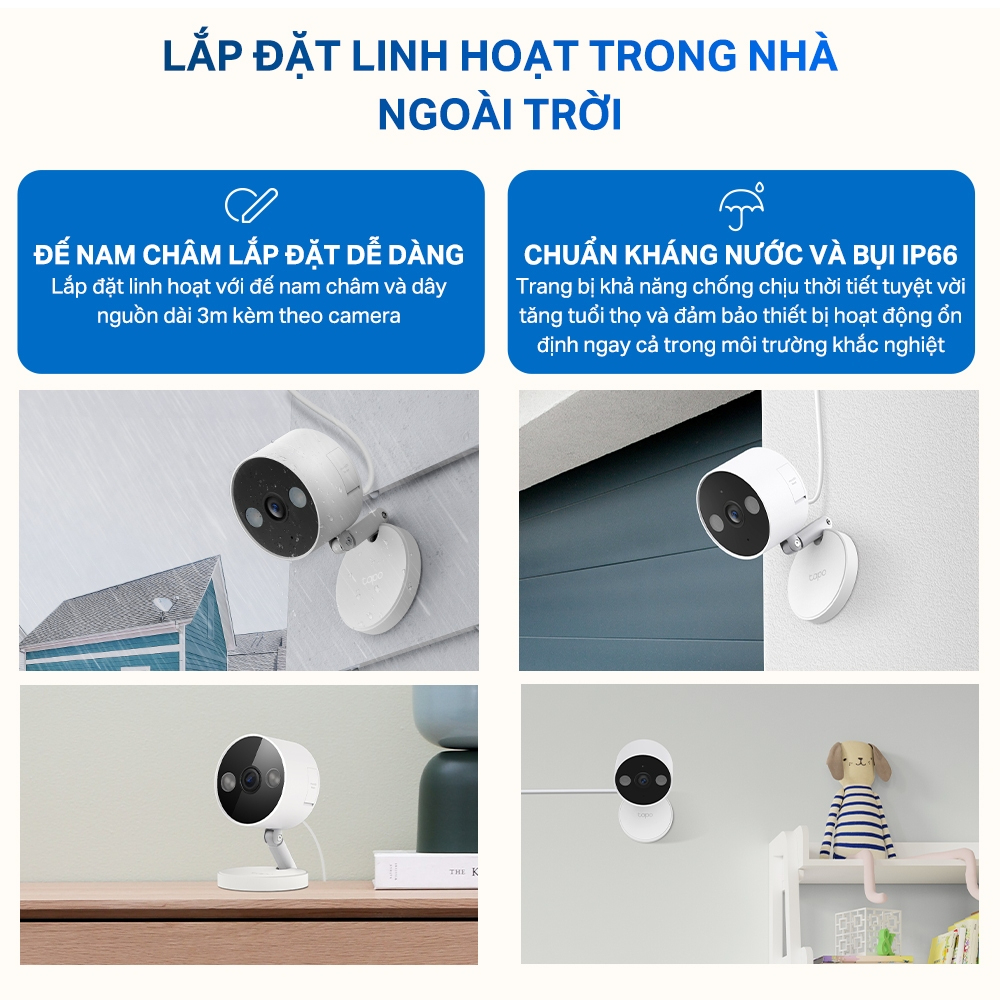- Độ phân giải 3MP (2K 2304 × 1296), hình ảnh chi tiết, sắc nét - Xoay ngang 360° & dọc 114° – bao quát toàn bộ không gian - Chuẩn chống nước & bụi IP66 – lắp đặt linh hoạt trong/ngoài trời - Hồng ngoại ban đêm tầm xa 30m, hỗ trợ nhìn rõ trong bóng tối - Phát hiện chuyển động & cảnh báo thông minh - Tích hợp đàm thoại 2 chiều qua micro & loa - Hỗ trợ ghi hình liên tục vào thẻ nhớ MicroSD tối đa 512GB - Kết nối Wi-Fi ổn định, dễ dàng cài đặt qua app Tapo - Tích hợp chế độ riêng tư khi cần tắt ghi hình - Tương thích trợ lý ảo Google Assistant & Amazon Alexa LƯU Ý KHI MUA HÀNG Cảm ơn quý khách đã quan tâm đến sản