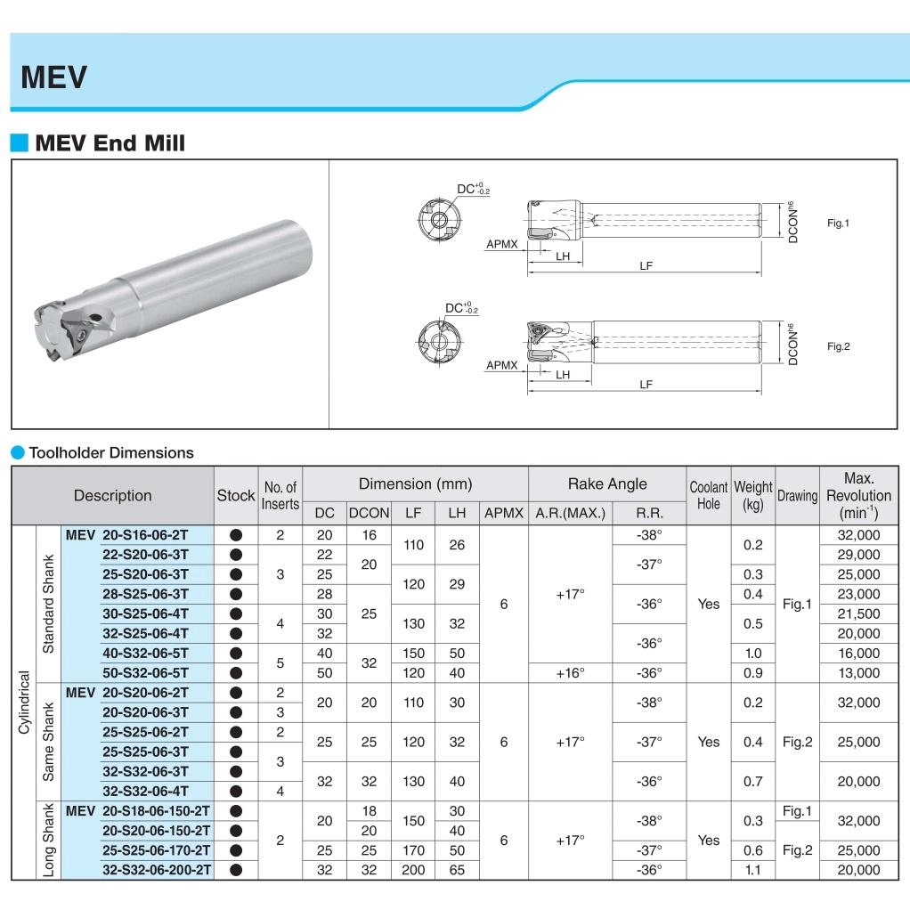 Cán dao phay D20 Kyocera Model MEV20-S20-06-3T Hàng Chính Hãng Chất Lượng Uy Tín