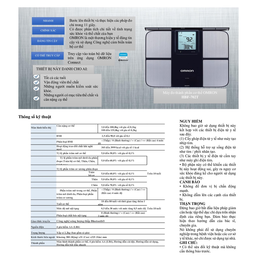 ✨Cân đo chỉ số cơ thể HBF-702T - Omron Nhật Bản theo 7 chỉ số cơ thể, mức cân 135kg