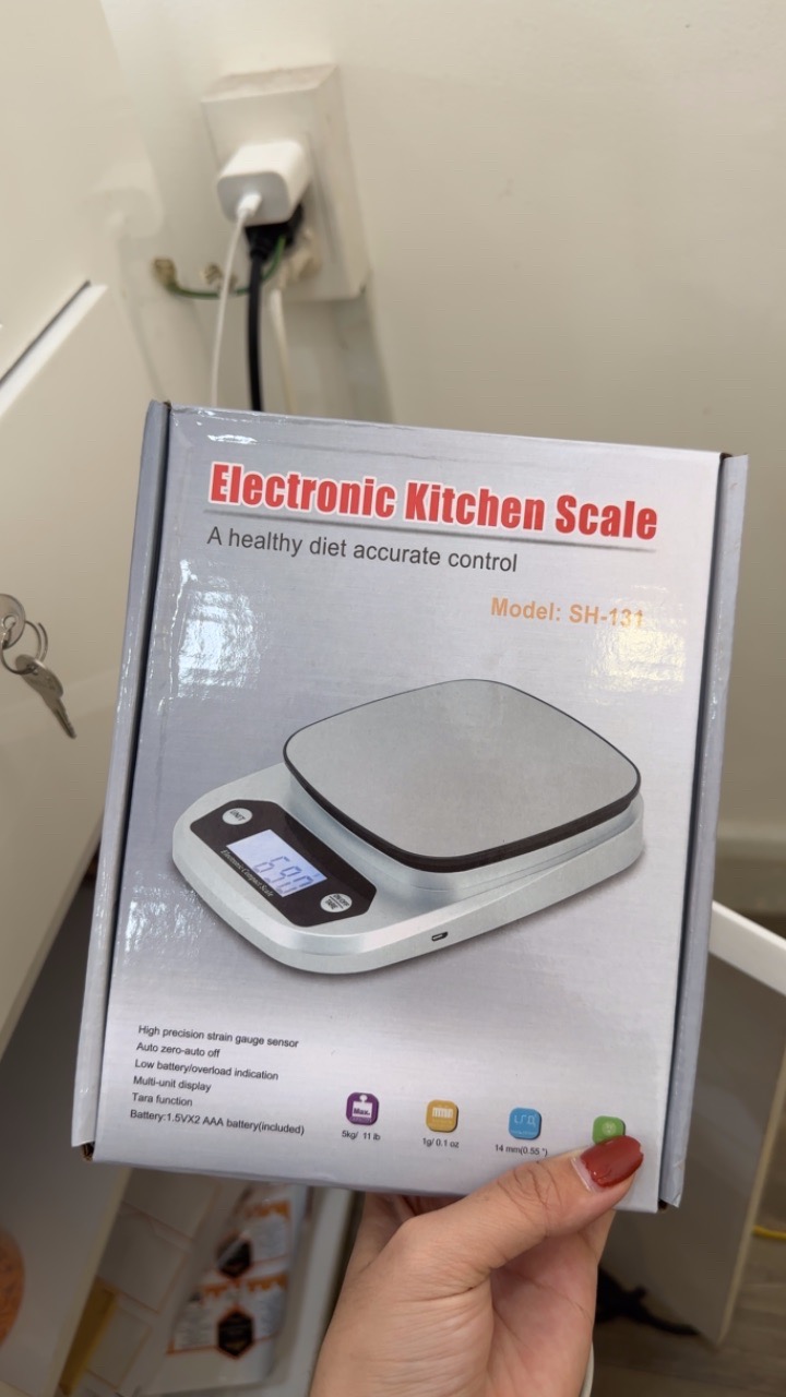 Một chiếc cân nhà bếp có thể tạo ra tất cả sự khác biệt trong việc nấu ăn và chuẩn bị thực phẩm của bạn. Mặc dù việc sử dụng các loại công cụ đo kiểu cũ như sử dụng ống bơ, bát, ché..cũng có thể chấp nhận được. Tuy nhiên, những phương pháp đo trên tốn nhiều công sức, đôi khi chưa chắc đã chính xác. Để việc cân đong, đo đếm thuận tiện và chính xác không tốn thời gian và công sức thì bạn nên sử dụng phương pháp đo theo trọng lượng bằng cân nhà bếp điện tử CÂN TIỂU LY ĐIỆN TỬ THỰC PHẨM TANITA KD321 CHÍNH HÃNG NHẬT BẢN Sản phẩm cao cấp đến từ TANITA, thương hiệu hàng đầu NHẬT BẢN về cơ khí điện tử chính xác. Với uy tín trên thị trường TANITA đã và đang cung cấp hàng ngàn sản phẩm không chỉ vô cùng chính xác hiện đại mà lại rất bền bỉ và chắc chắc. Cân nhà bếp hiện nay được ứng dụng rất rộng rãi trong rất nhiều ngành nghề, nhất là ăn uống: Tiệm bánh, Tiệm cà phê, Cửa hàng hải sản, Thương nhân buôn bán yến xào, Nhà hàng, Bếp ăn gia đình. ️ TÍNH NĂNG Cân nhỏ gọn TỐI ĐA 3KG, TỐI THIỂU 0.1g (chế độ micro mode) Thiết kế màu bạc sang trọng, phù hợp với mọi không gian bếp Cân nhỏ gọn dễ mang vác Sử dụng pin AA phổ biến Cách sử dụng đơn giản thông qua vài phím bấm Chế độ TARE tự trừ bì tiện lợi Đĩa cân bằng thép không gỉ có khả năng chịu nhiệt độ cao và có thể tháo rời để dễ dàng để lau chùi. Chế độ micromode cho phép chuyển đổi đơn vị tối thiểu từ 0g sang 0.0g Dễ dàng chuyển đổi từ “g” sang “ml", CÓ THỂ CÂN ĐO CHẤT LỎNG ️ THÔNG SỐ KỸ THUẬT Cân tối đa: 3kg (3000g) Khoảng chia: 1g Micro mode: 0.1g (0g ~ 300g) ️️️ Màn hình: 68mm Nguồn: 2 pin AA Kích thước: 210 x 150 x 35 mm Trọng lượng: 573g Công ty sản xuất: Dongguan TANITA Health Equipment Co., Ltd Địa chỉ: Dongguan City, Guangdong Provice, 523080, P.R.China ️ HƯỚNG DẪN SỬ DỤNG Bước 1: Lật mặt sau của cân, rút dải phim đen tiếp xúc giữa PIN và CHÂN TIẾP XÚC Bước 2: Bật nút ON/OFF để khởi động cân, đợi cân hiển thị 0g Bước 3: Đặt vật lên cân, ấn nút TARE (trừ bì) sau đó đặt thêm 1 vật khác lên cân ️ Chế độ đặc biệt: TARE/Micro Mode có thể chuyển đổi khoảng chia 0.0g và 0g (tối đa 300g) ️ Chế độ đặt biệt: G/ml chuyển đổi giữa 2 đơn vị đo là g và ml (đo chất lỏng)