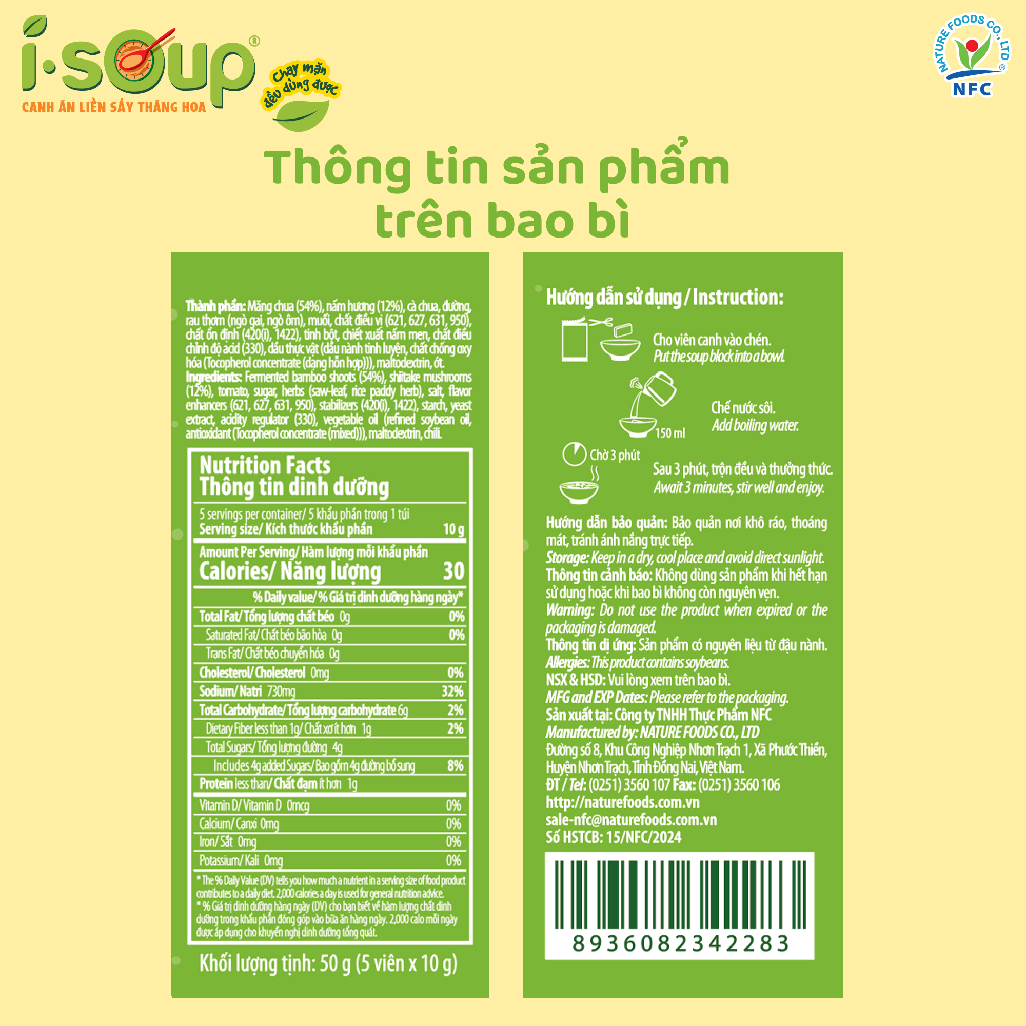 ✨Canh Măng Chua Nấm Hương Ăn Liền ISOUP 50g 05 Viên - Viên Canh Ăn Liền Sấy Thăng Hoa