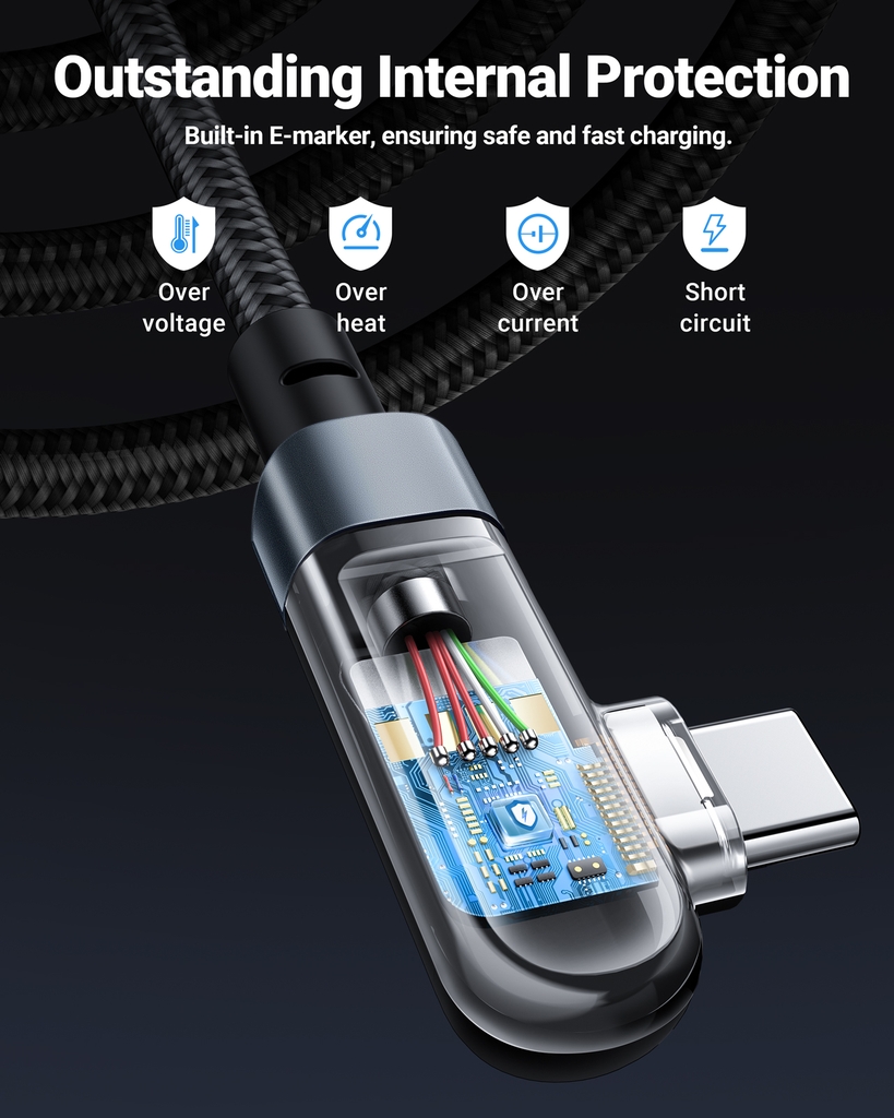 - Tính năng 2: Tích hợp chip E-marker, điều chỉnh dòng điện và điện áp một cách thông minh để đảm bảo nguồn điện ổn định.