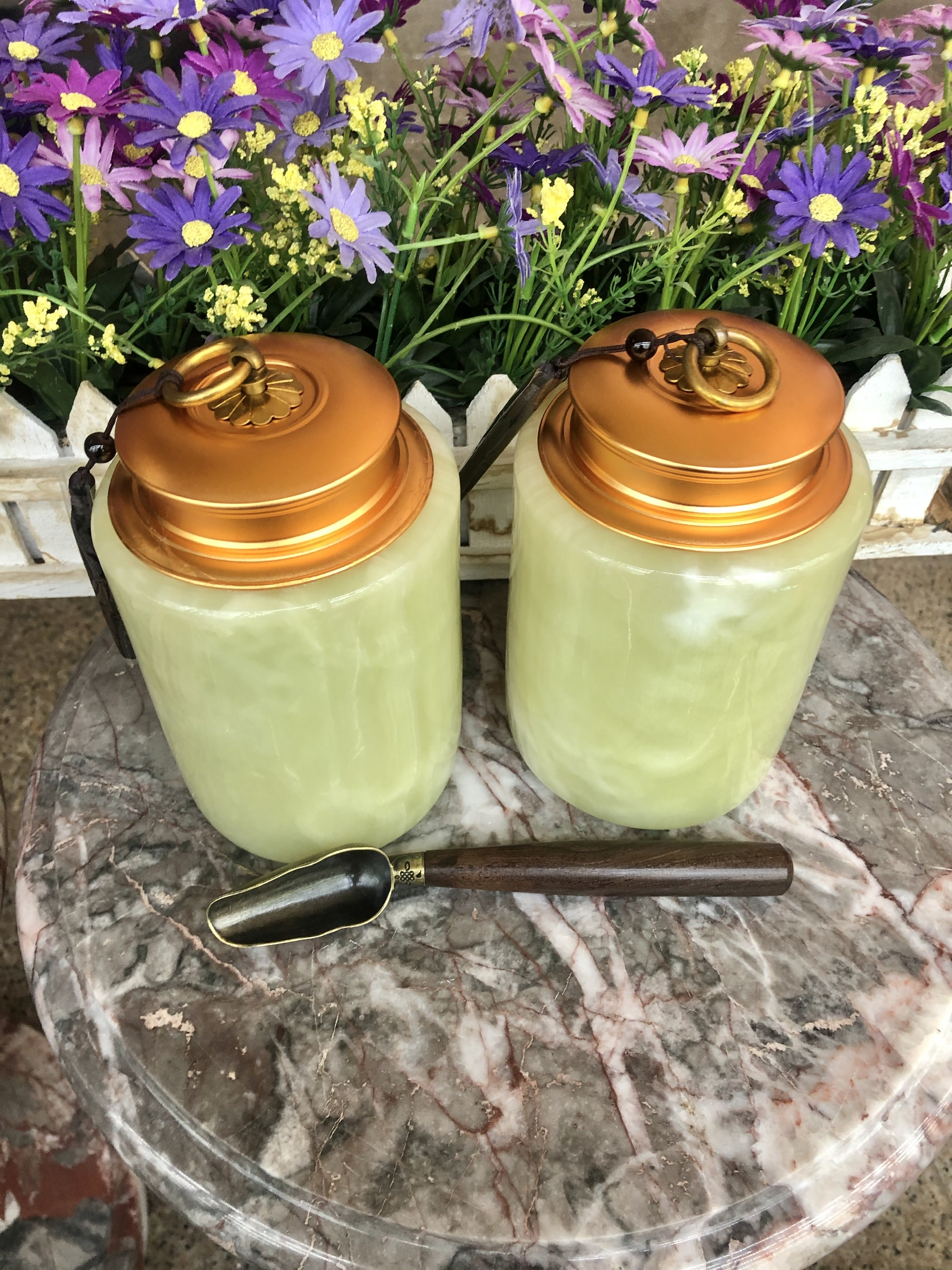 ✨Cặp bình, hũ đưng trà đá ngọc onyx - Cao 15cm