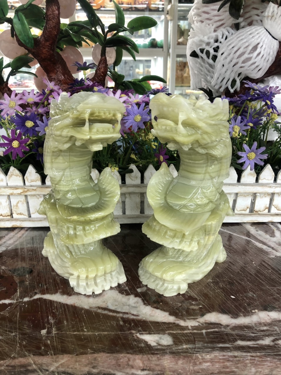 Chất liệu: Đá ngọc hoàng long Kích thước: Dài 30 cm x Rộng 10 cm x Cao 16,5 cm Khối lượng: 1,9 kg Do cá rồng là loài cá tượng trưng cho quyền lực oai
