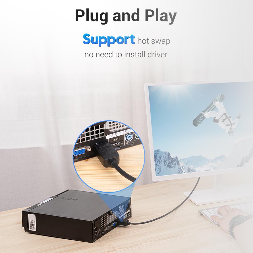 VENTION Mini DP to DP adapter cable is an indispensible assistant for you. It supports 4K 3840x2160 resolution. It directly connect your laptop or tablet to an HD monitor. It supports thunderbolt interface. Features: 4K