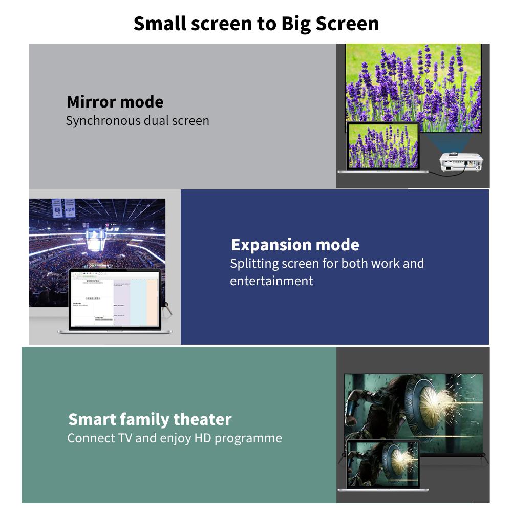 Features: Flat cable design and optimized fishtail, convenient to be hidden. 1080P HD supported to show attractive views. Laptop to projector, enlarge the file and show it clearly. Dual modes, dual-screen mirror mode and dual-screen