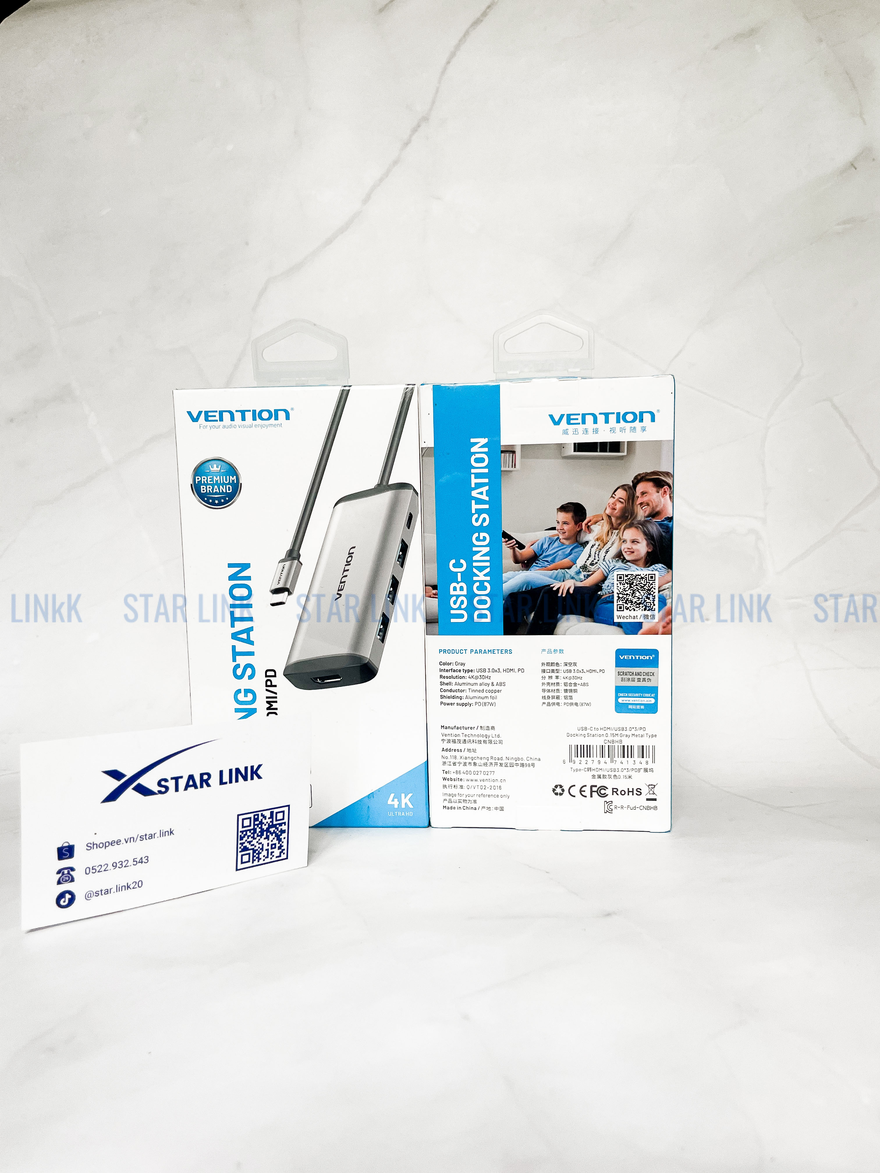 ✨Cáp chuyển đổi Type-C sang HDMI + 3 cổng USB 3.0 + Type-C PD Vention CNBHB - hàng chính hãng