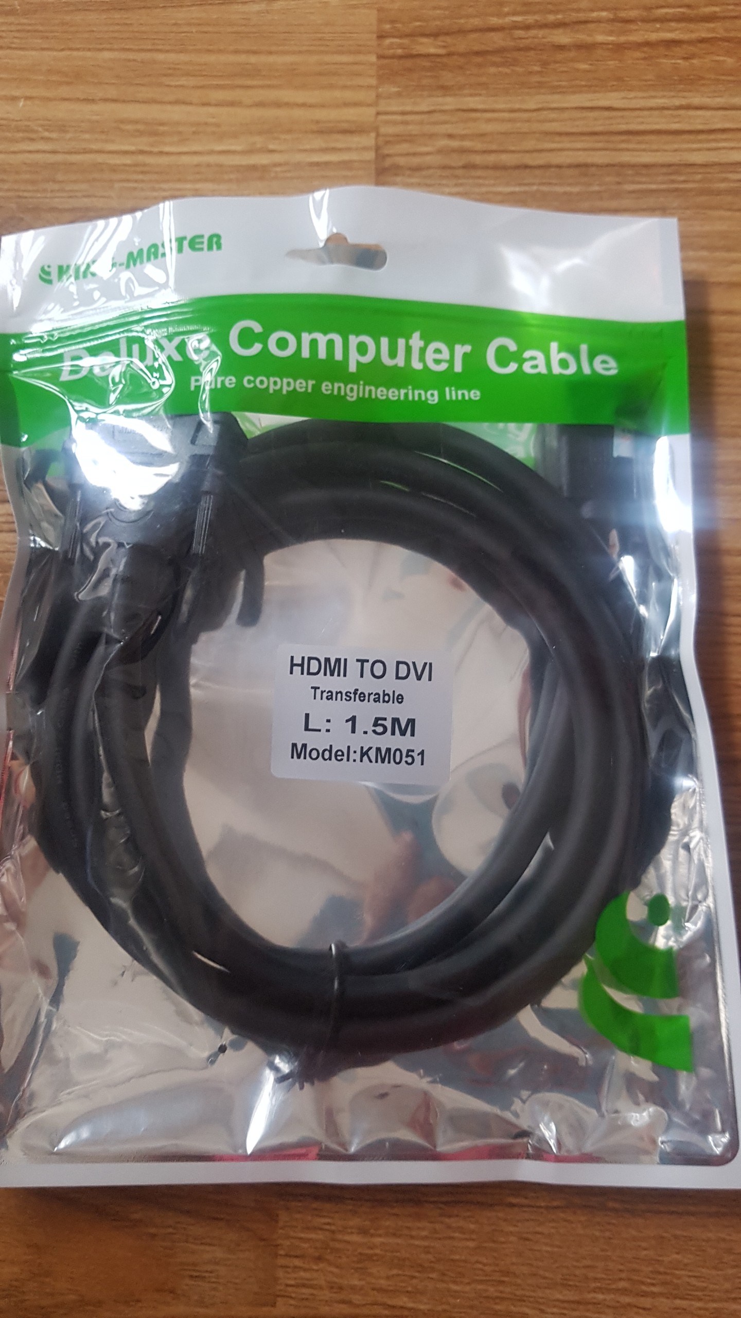 Cáp HDMI -> DVI (24+1) 1.5m KM051 Cáp chuyển đổi trực tiếp từ HDMI sang DVI 24-1 (DVI chuẩn D ) Và ngược lại. Cáp đi 2 chiều Chiều dài : 1.5m *Lưu ý: Vì cổng DVI có nhiều loại đầu khác nhau, quý khách vui lòng xem kỹ cũa mình thuộc loại nào để mua đúng sản phẩm Vì DVI cắm đúng chuẩn thì mới xuất được hình, cắm sai vẫn cắm được nhưng không xuất ra hình