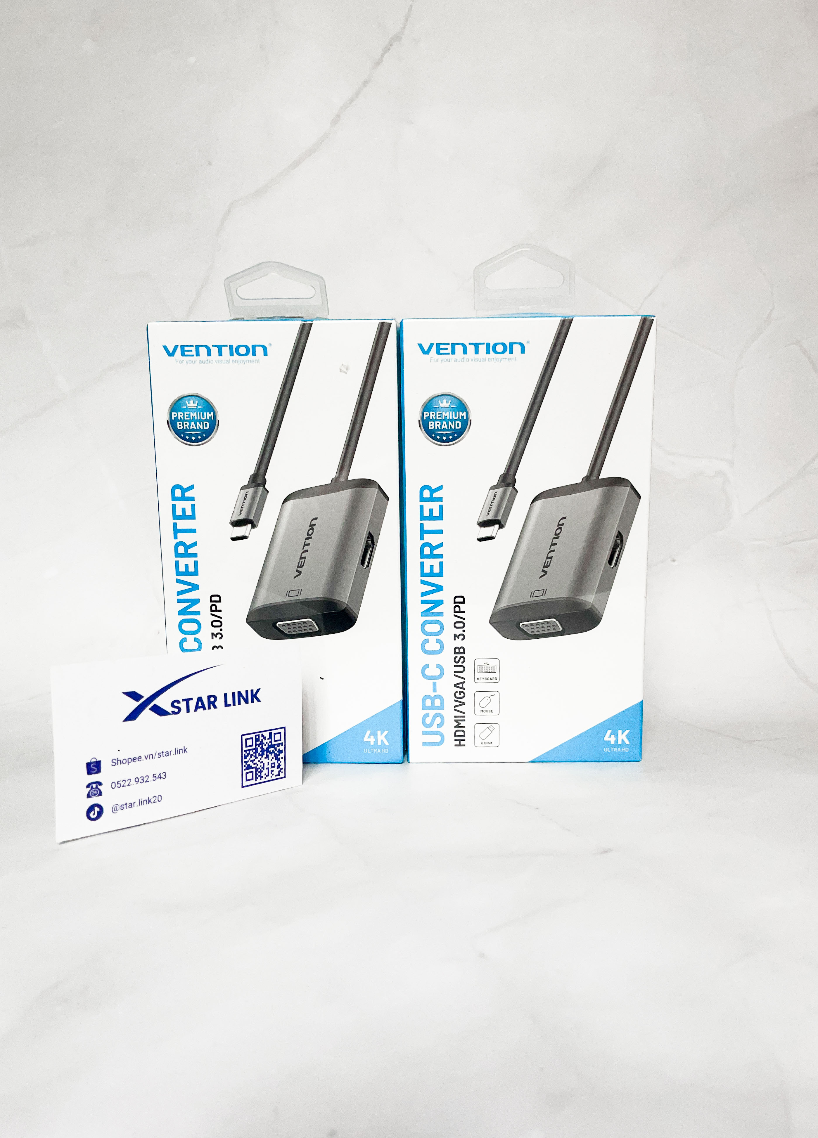 ✨Cáp chuyển USB Type C to HDMI + VGA + USB + PD (87W) Vention TFAHB(4 in 1) - Hàng chính hãng