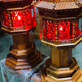 Đèn thờ gỗ hương cao 40cm, luồn sẵn dây và bóng