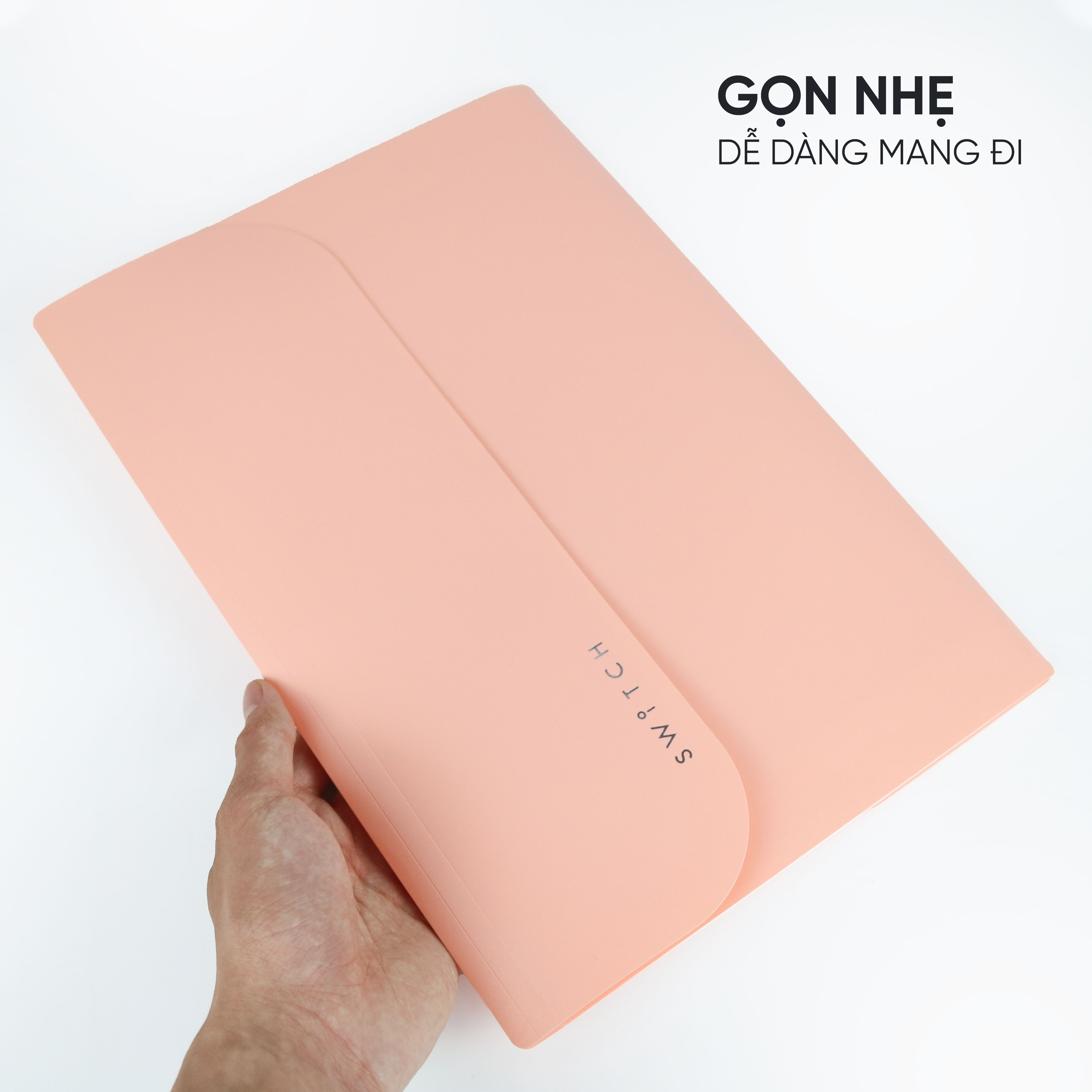 Cặp đựng tài liệu A4 nhiều ngăn AO+ được thiết kế nhỏ gọn, khóa thông minh không cúc giữ giấy tờ luôn được phẳng phiu, 5 ngăn cùng phần gáy co dãn giúp bạn lưu trữ được nhiều giấy tờ hơn.