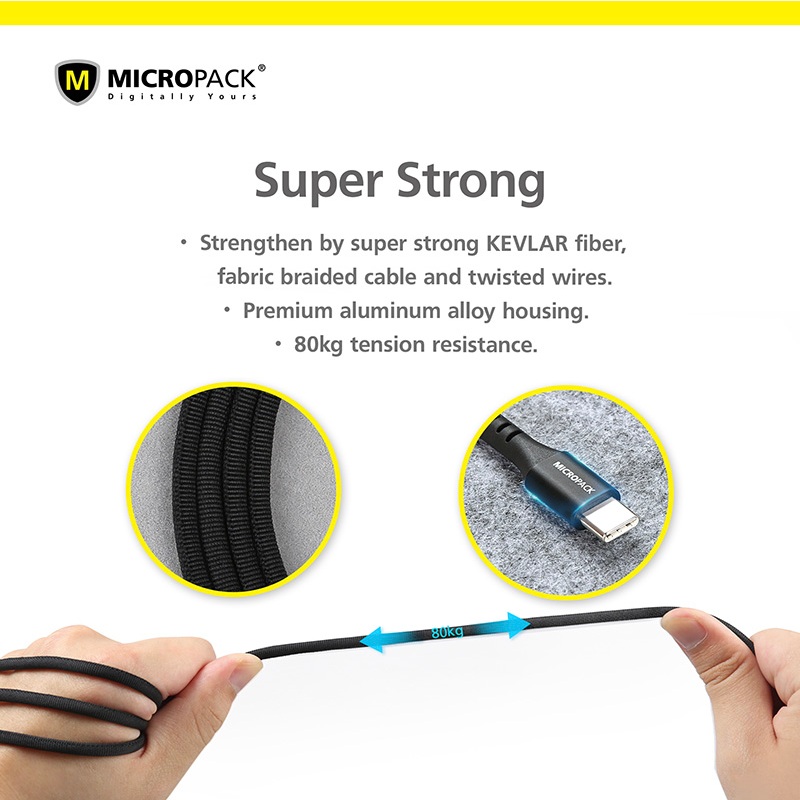 ✨Cáp Sạc MicroPack POWER LINK MC-CC23 Sạc Nhanh USB-C to C Dòng Điện Tối Đa 3A Dệt Bằng Sợi Kevlar Siêu Bền Hàng Chính Hãng