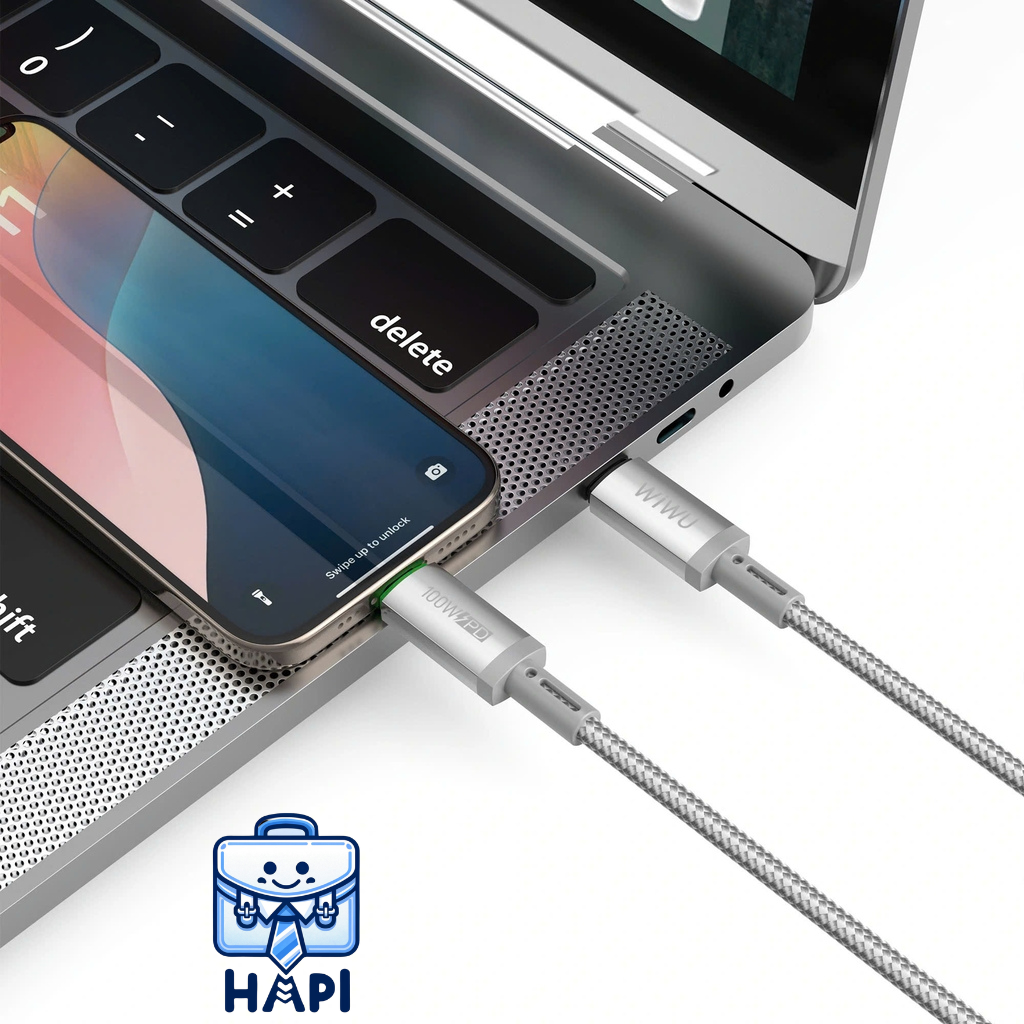 ✨Cáp sạc Type-C to Type-C 100W hàng chính hãng WiWU Maglink Wi-C084. Dây dù nylon siêu bền, truyền đẫn ổn định