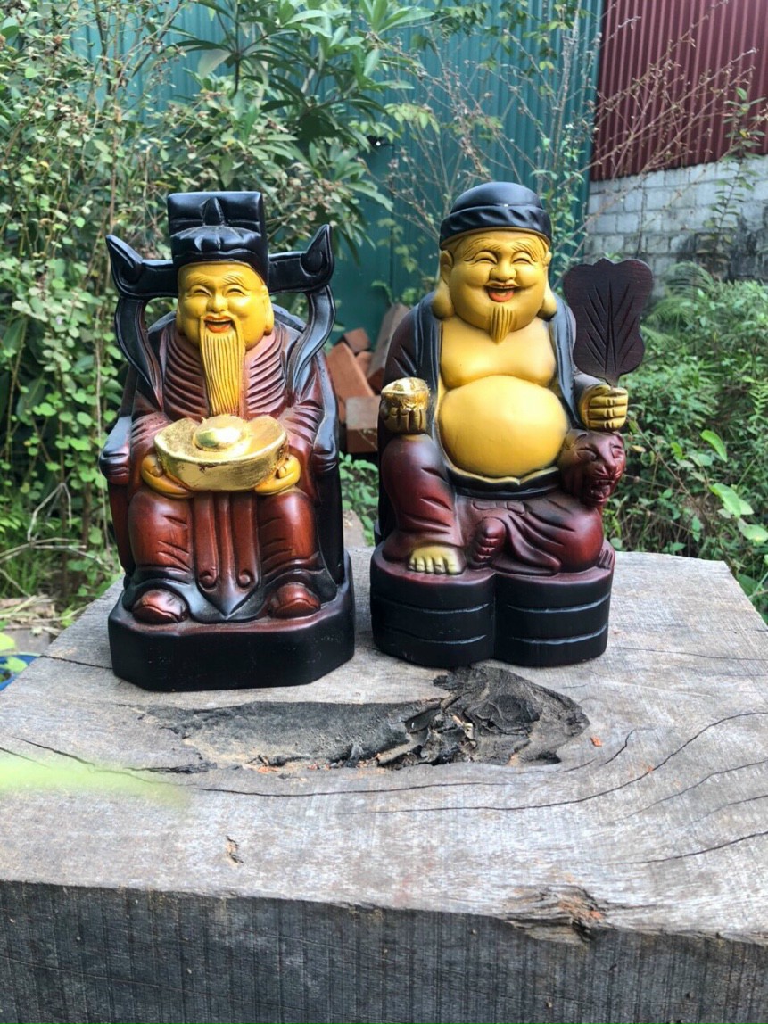 Cặp thần tài thổ địa cao 15 20 25 30cm gỗ hương