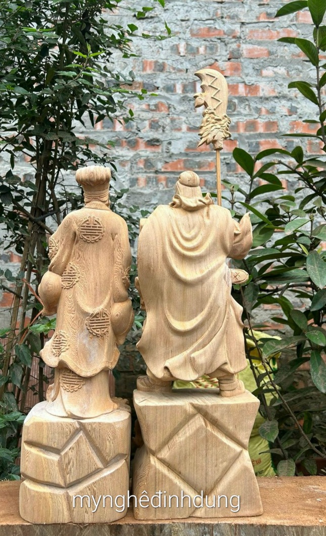 _ Combo cặp tượng quan văn khổng minh gia cát lượng Và quan võ quan công đuọc làm bằng chất liệu gỗ bách xanh liền khối tự nhiên 100% _ kt cao 30x11x9cm _ Cặp