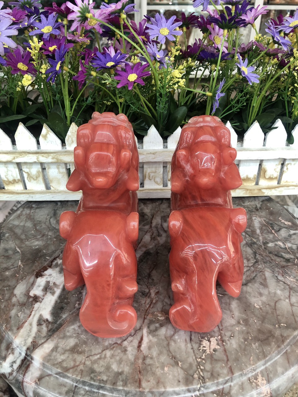 Hợp mệnh Thổ - Kim Chất liệu: Đá cẩm thạch vàng cà rốt Kích thước: Dài 15 cm X Rộng 6 cm x Cao 12,5 cm Khối lượng: 3,2 kg / cặp Ý nghĩa Tỳ