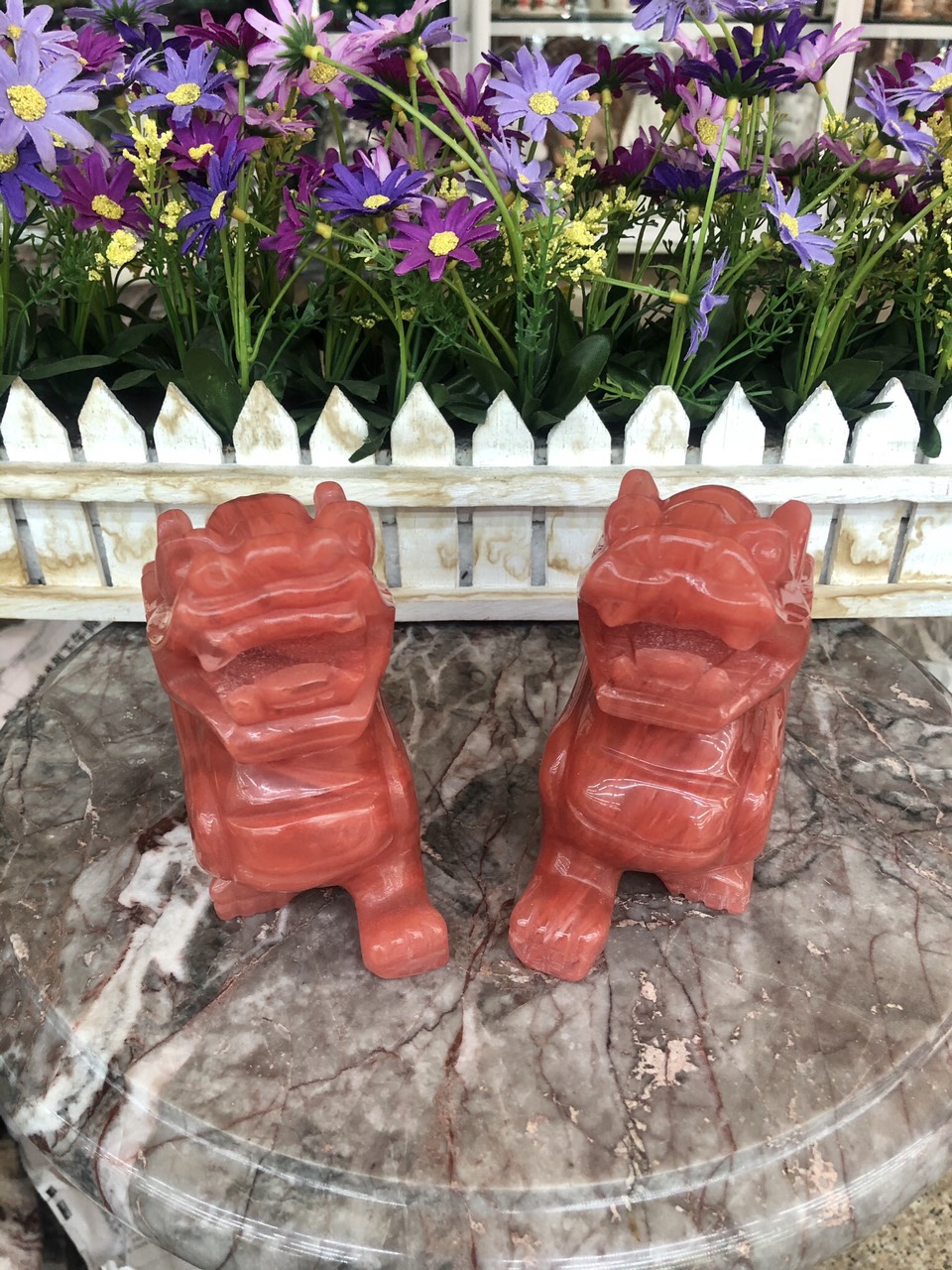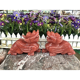 ✨Cặp Tỳ Hưu phong thủy đá núi lửa Obsidian đỏ - Dài 15 cm