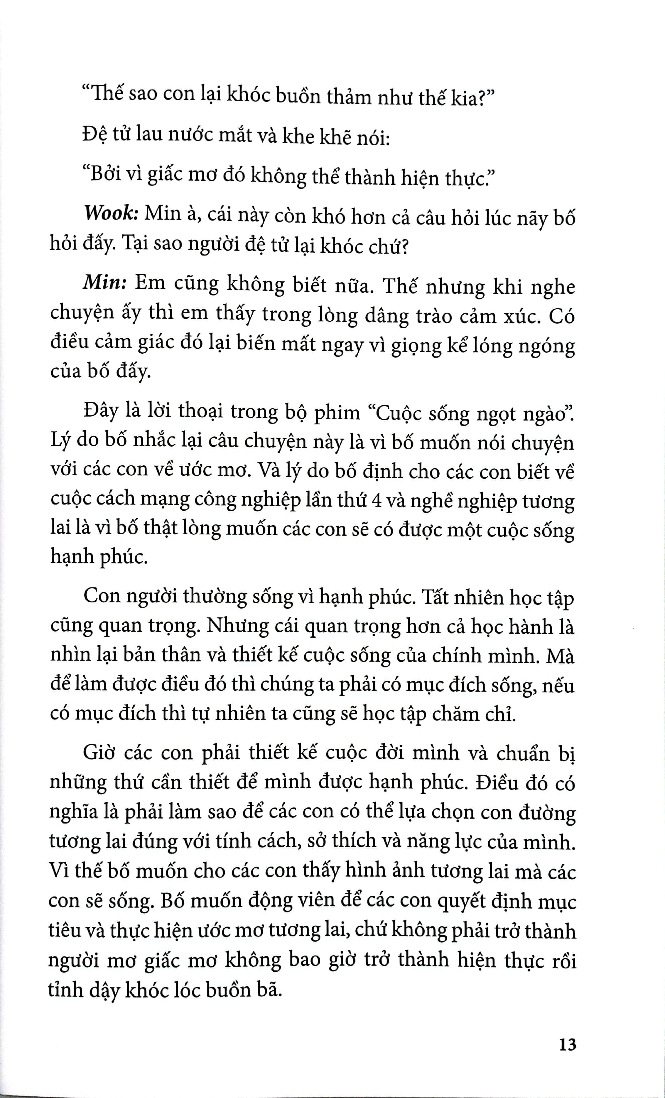 Theo lời của Alby Toffler. Chúng ta cần chuẩn bị những gì để sống một cuộc sống hạnh phúc với ước mơ? Cần phải học những kỹ năng cần thiết để sống một cuộc sống thú vị và bổ ích bằng cách tìm ra những giá trị không thay đổi ngay cả khi thời thế thay đổi. Trí tưởng tượng và sự sáng tạo là rất quan trọng trong tương lai, nơi mà các công nghệ thông tin và truyền thông như trí tuệ nhân tạo, dữ liệu lớn, thực tế ảo và thực tế tăng cường cũng như các công nghệ hội tụ trong các lĩnh vực khác nhau được yêu cầu. Thay vì chỉ đơn giản là ghi nhớ và thu thập và học hỏi kiến thức và thông tin, nó sẽ cần thiết để phát triển sức mạnh của khả năng tư duy mà chỉ con người mới có. Cuốn sách này sẽ mang đến cho bạn cơ hội khám phá những gì bạn quan tâm và những gì bạn giỏi.