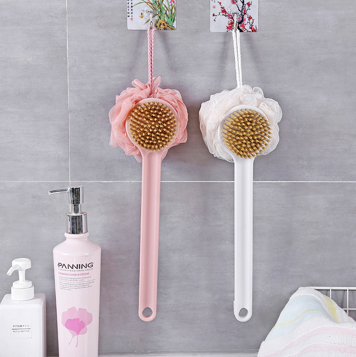 Bông Tắm Chà Lưng2 Mặt Kèm Bàn Chải Cọ mềm mịn,Cây Bông Tắm Kì Lưng Tẩy Tế Bào Chết giảm mụn lưng