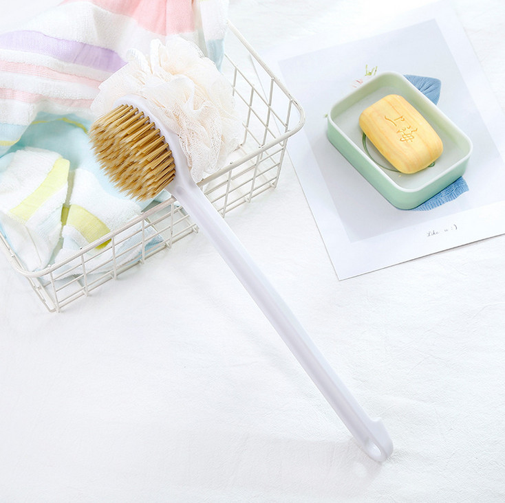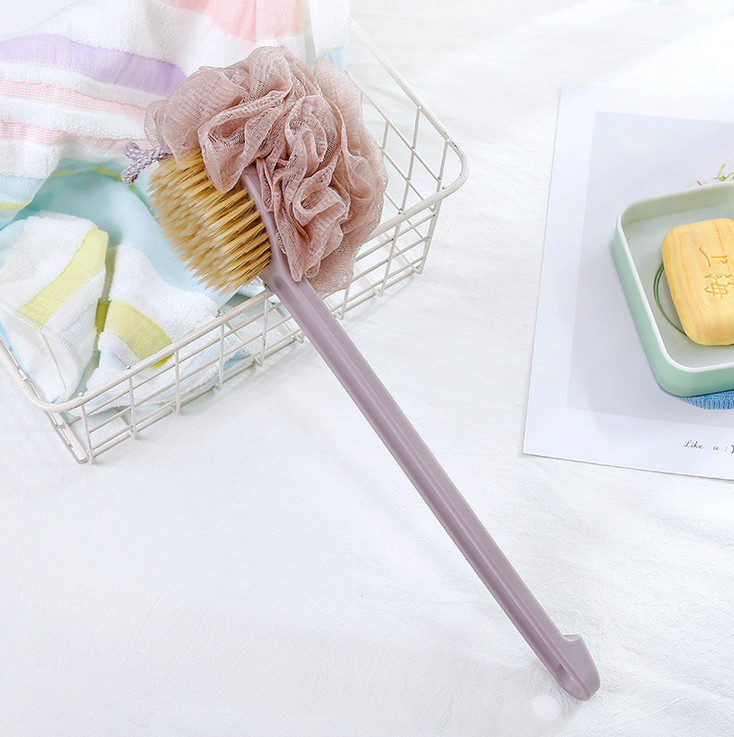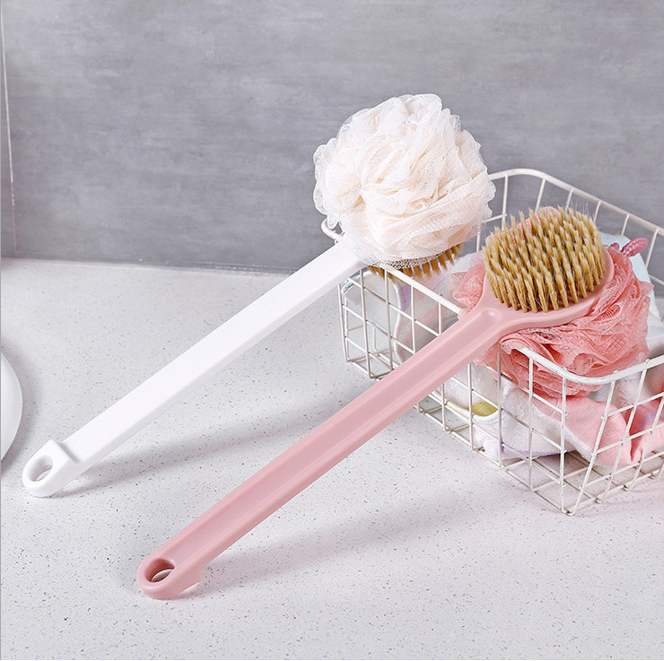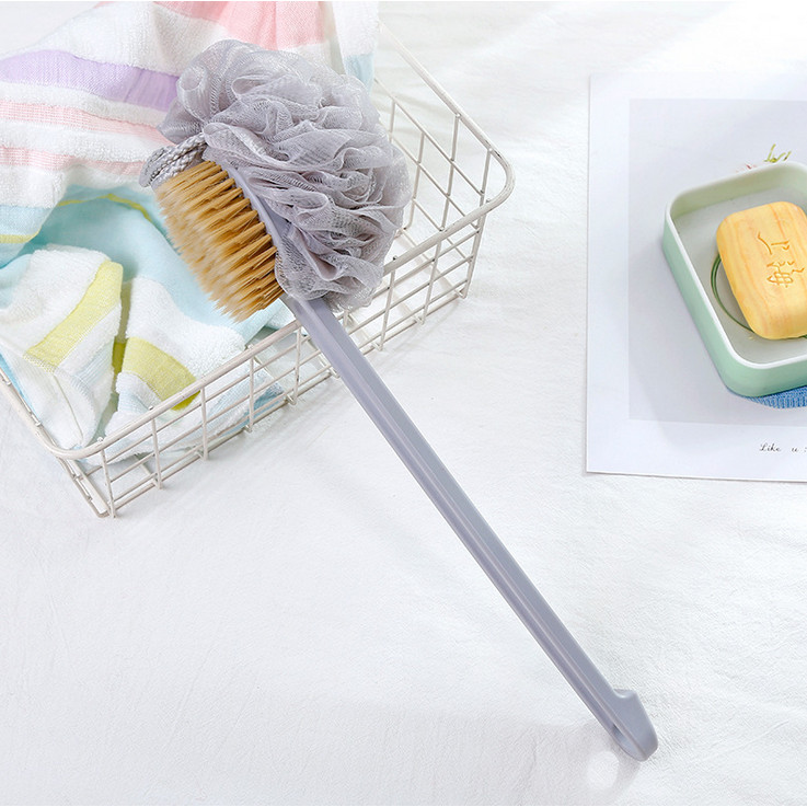 Cây Cọ Lưng 2 Mặt Massage Tắm, Bông Tắm Tay Cầm Dài Kì Lưng