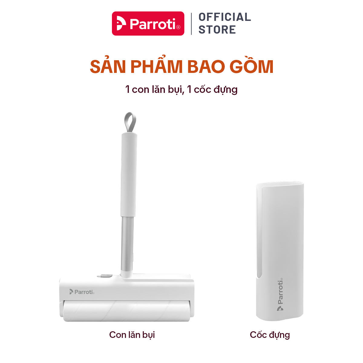 • Bộ sản phẩm gồm: 1 cây lăn bụi, 1 lõi lăn và 1 ống đựng bảo quản lõi lăn