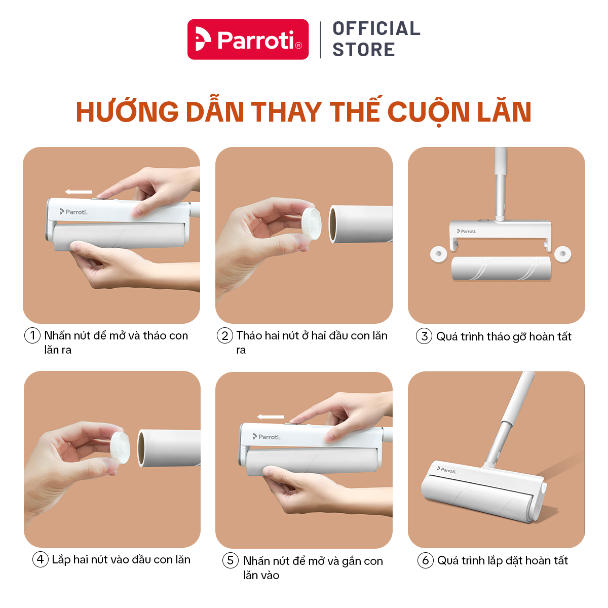 • Bước 5: Gắn ống bảo quản lõi lau sau khi sử dụng. Có thể treo hoặc gấp dọc và dựng sản phẩm để gọn gàng (*) Lưu ý: Bạn có thể tham khảo kỹ hơn ở phần mô tả sản phẩm ( Video) hoặc đừng ngần ngại liên hệ CSKH Parroti để được hướng dẫn và hỗ trợ một cách tốt nhất
