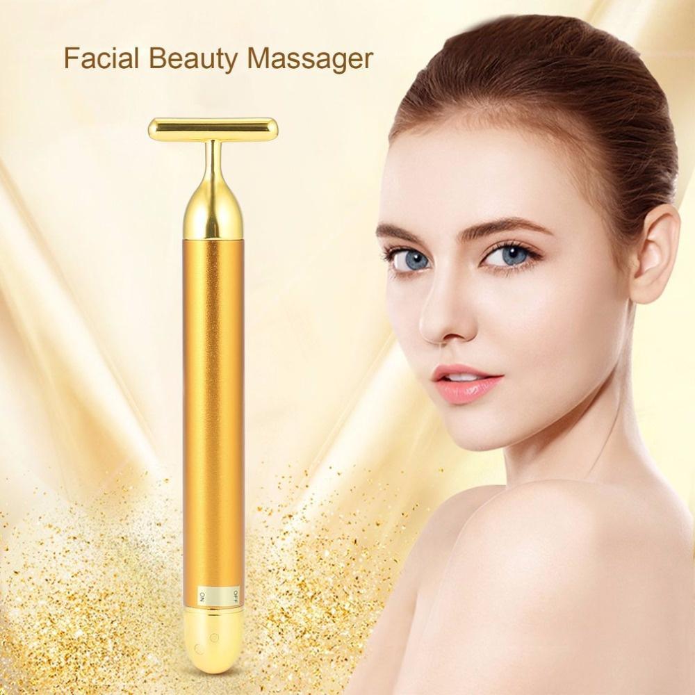 Cây lăn massage mặt mạ vàng 24k: Nâng cơ mặt, làm săn chắc và phục hồi da mặt. Có thể sử dụng trong phòng tắm với thiết kế chống thấm nước