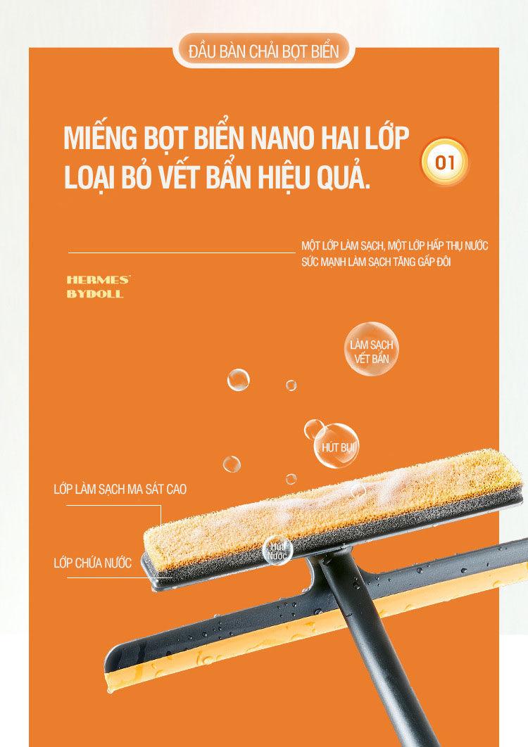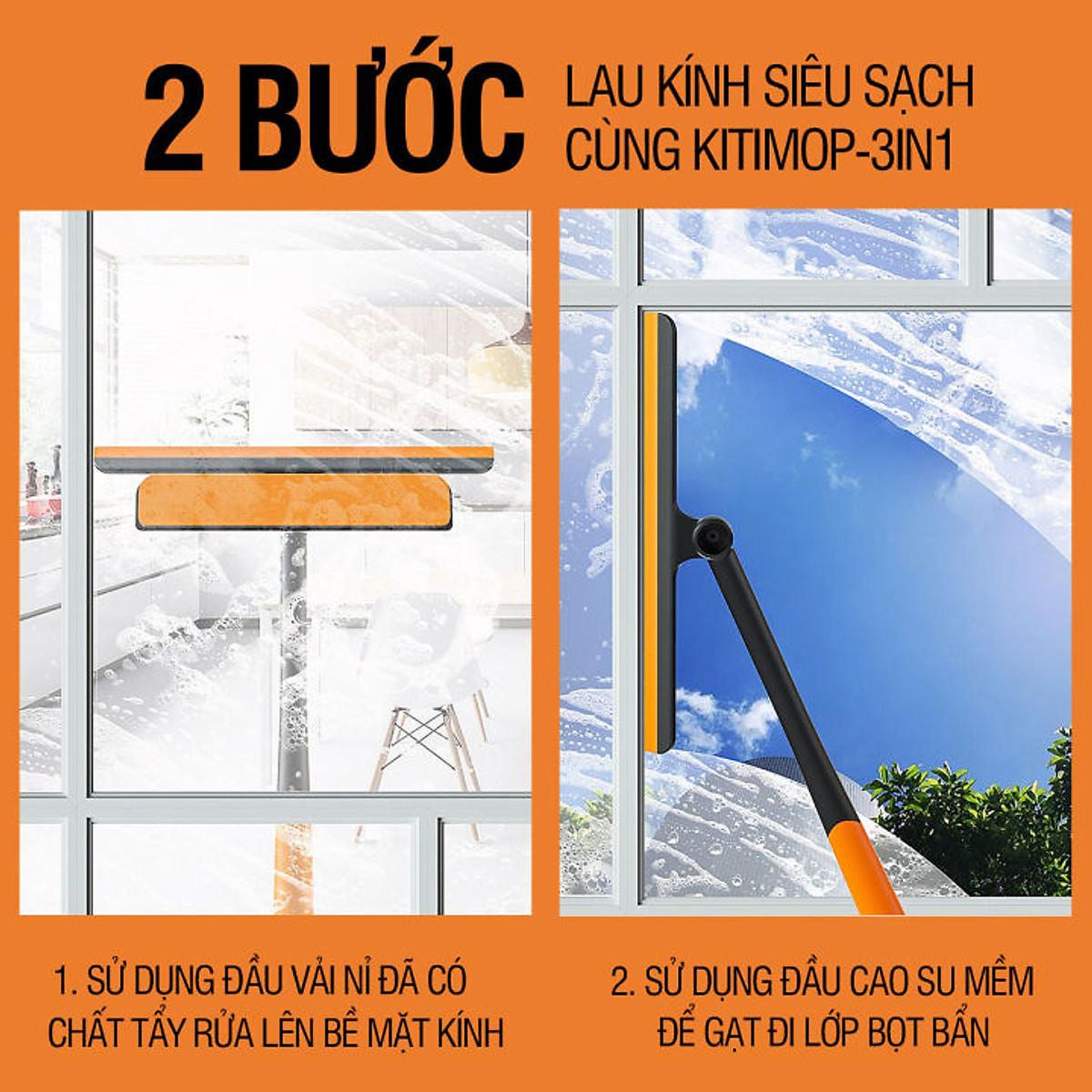 ✨Cây Lau Kính Thông Minh 3in1 Đa Năng Mini Xoay 360 Độ Nhỏ Gọn Tiện Lợi Với Tay Cầm Chống Trơn Màu Cam