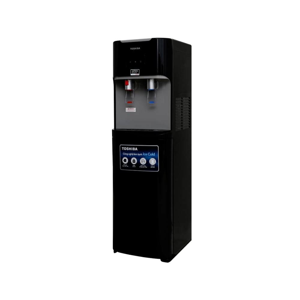 Kiểu dáng cây nước nóng lạnh Toshiba hiện đại, màu đen thanh lịch, kết cấu chắc chắn, tạo điểm nhấn cho không gian phòng khách, phòng làm việc, phòng bếp gia đình, công ty Nhiệt độ làm