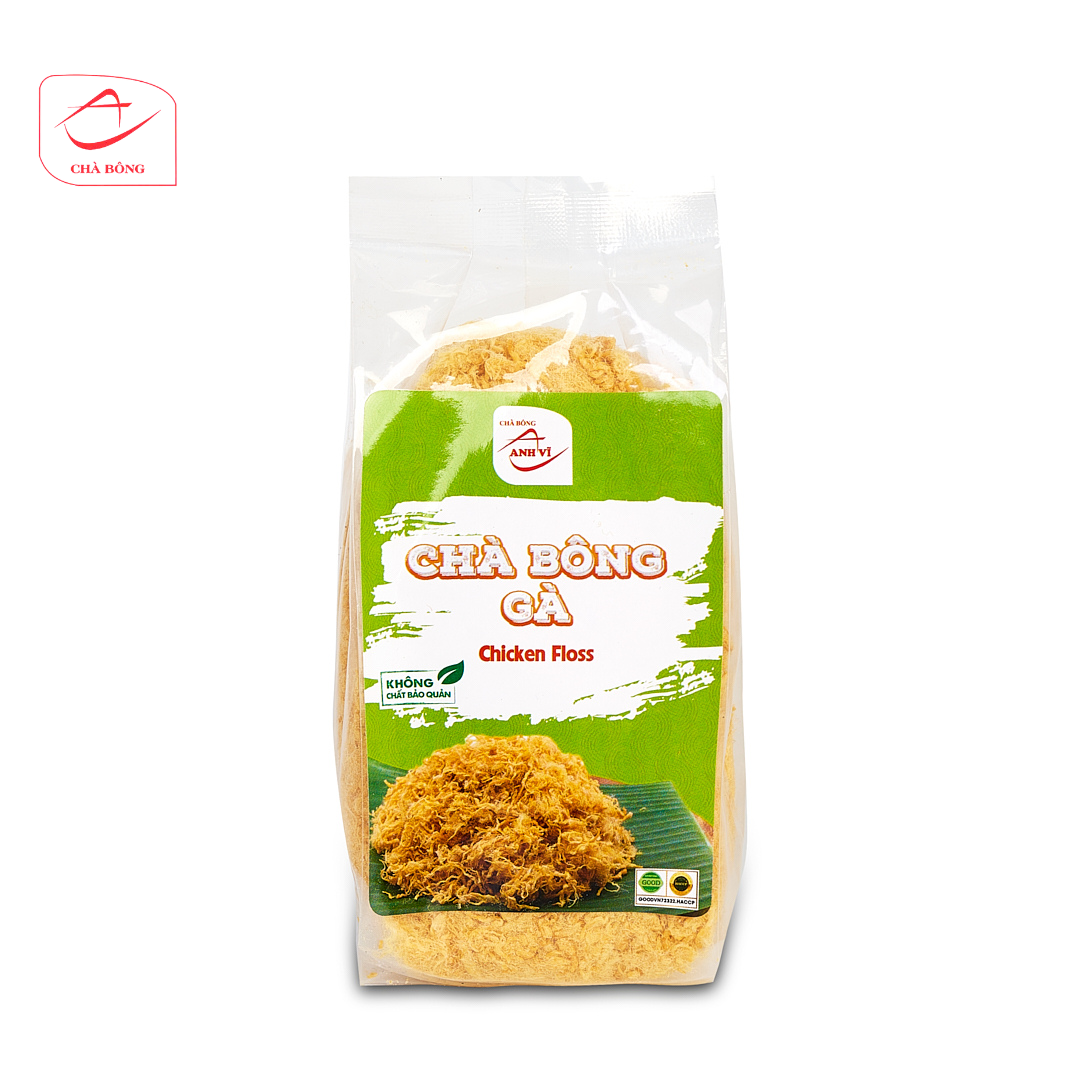 Chà bông gà nguyên chất Đặc Điểm Nổi Bật Của Chà Bông Anh Vĩ • Nguyên Liệu Tươi Ngon: Chà bông Anh Vĩ được sản xuất từ thịt tươi, chọn lọc kỹ càng từ những